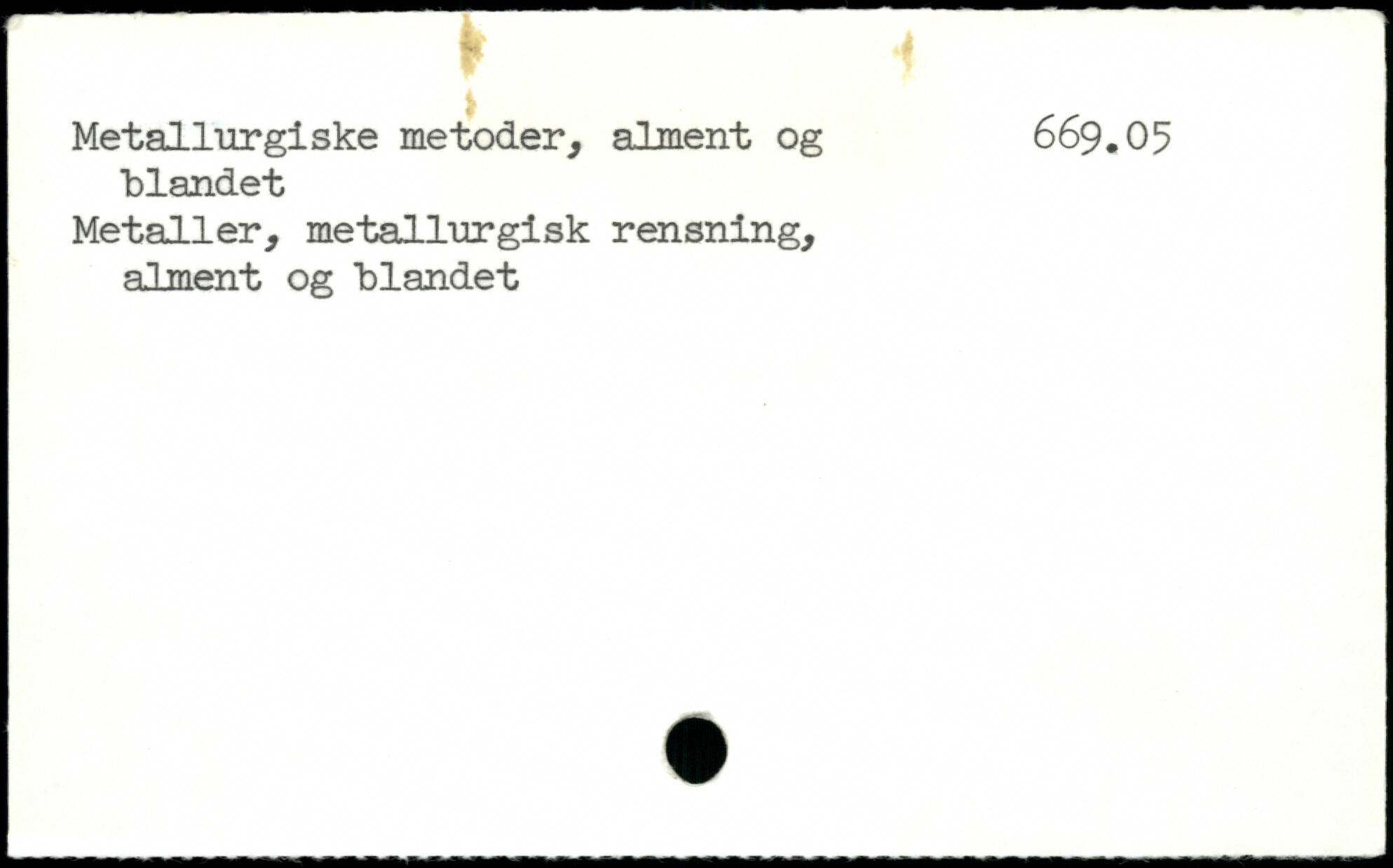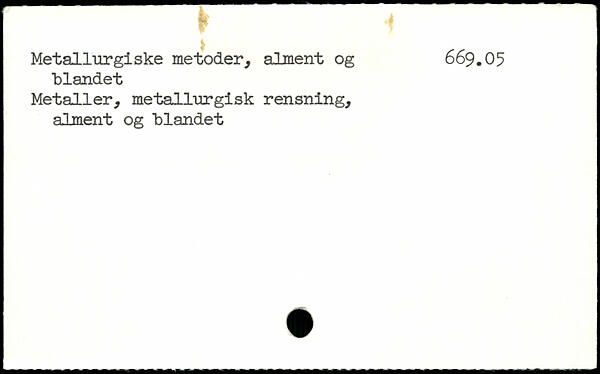 Metallurgi ske metoder, al ment og 669.05 tlandet Metaller, metallurgisk rensning, alment og blandet