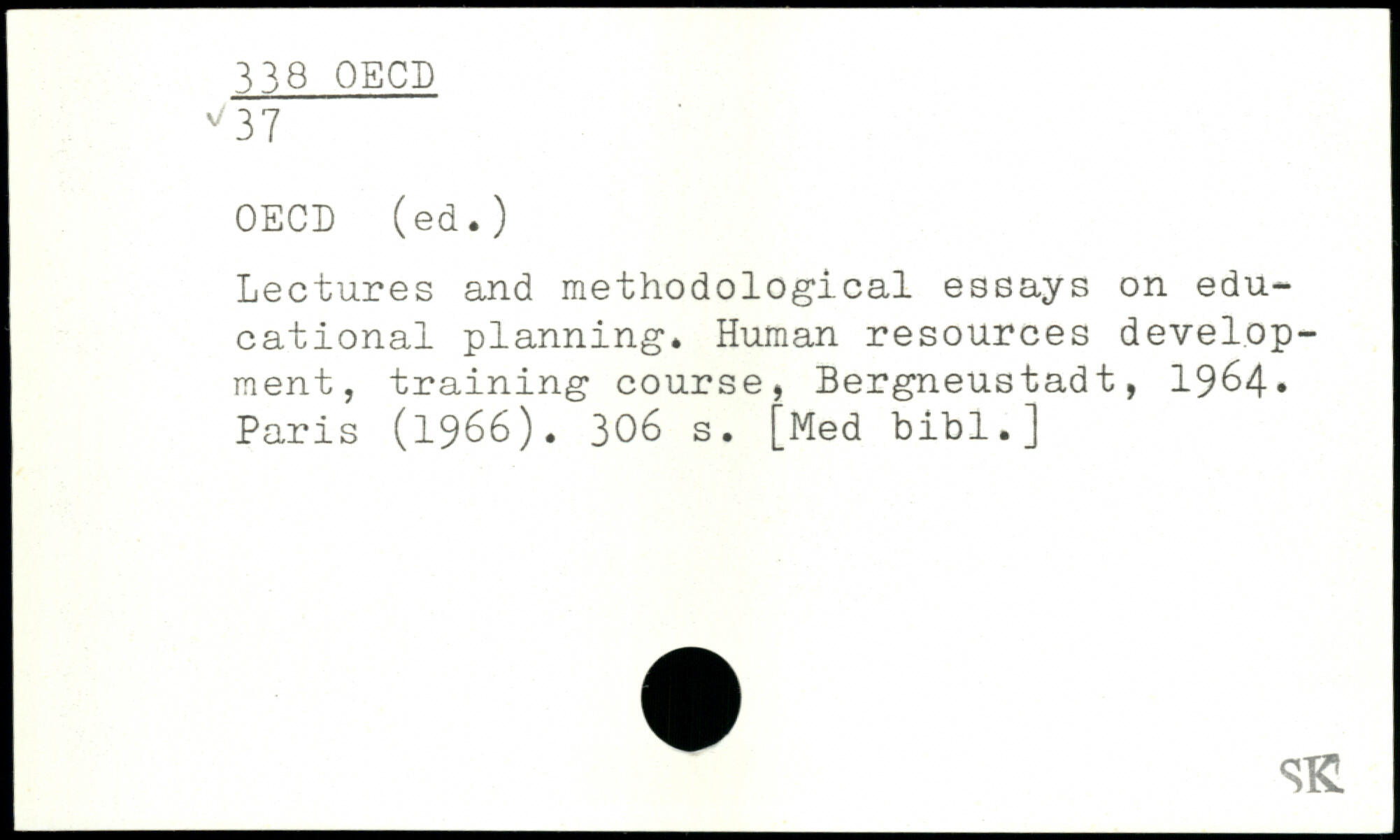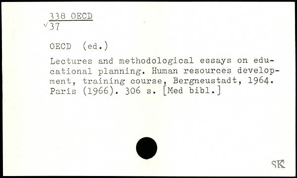 Lectures and methodological essays on educational planning. Human resources development, training course, Bergneustadt, 19^4, Paris (1966).