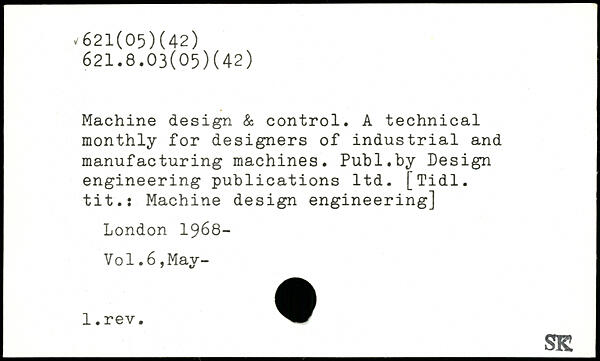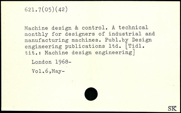 Machine design & control. A technical monthly for designers of industrial and manufacturing machines.