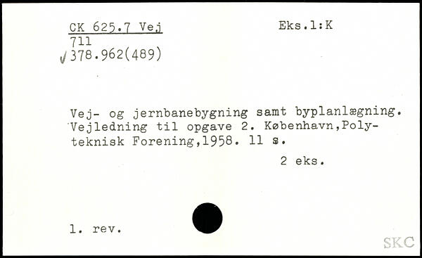 Vej- og jernbanebygning samt byplanlægning. Vejledning til opgave 2.