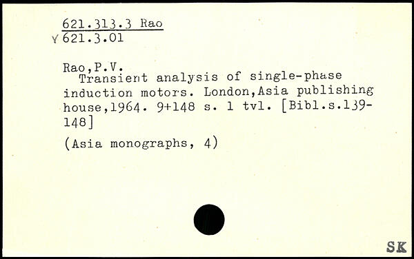 Rao,P.V. . , Transient analysis of single-phase induction motors.