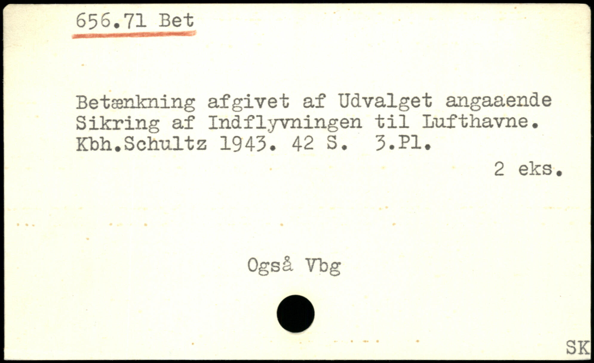 Betænkning afgivet af Udvalget angaaende Sikring af Indflyvningen til lufthavne, Kbh.Schultz 1943.