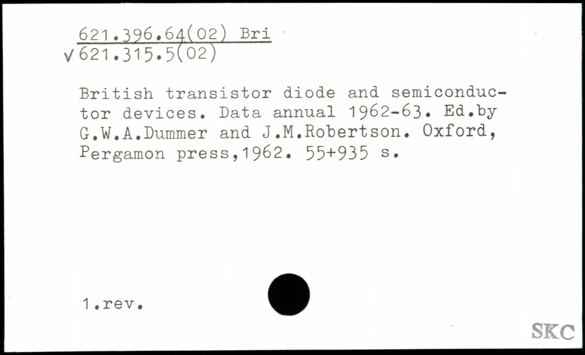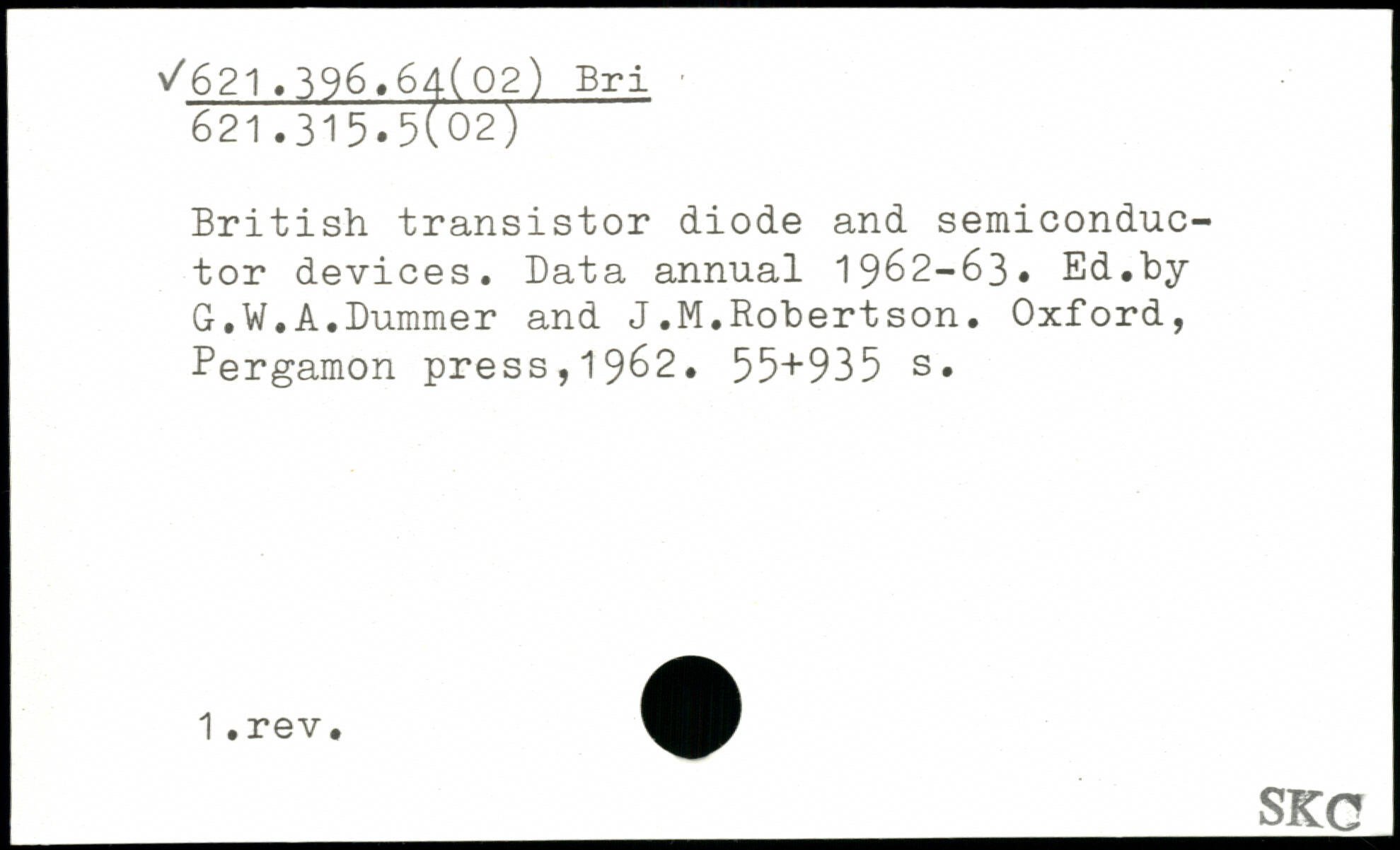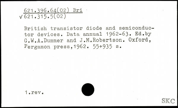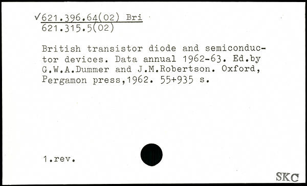 British transistor diode and semiconductor devices. Data annual 1962-63, Ed.by G.W.A.Dummer and J,M.Robertson. Oxford, Pergamon press,19^2.