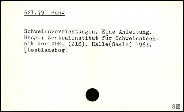 Schweissvorrichtungen. Eine Anleitung. Hrsg.: Zentralinstitut für Schweisstech-nik der DDR, (ZIS). Halle(Saale) 1963. [L0sbladebog]