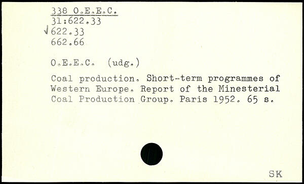 OoEcEoC. (udg,) Coal production. Short-term programmes of Western Europe, Report of the Minesterial Coal Production Group.