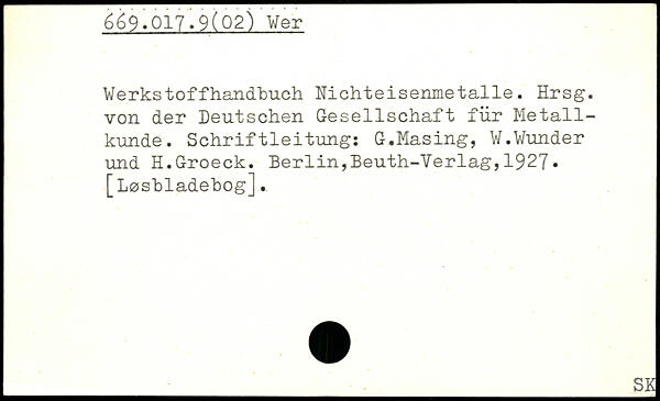 Werkstoffhandhuch Nichteisenmetalle. Hrsg, von der Deutschen Gesellschaft für Metallkunde. Schriftleitung: G.Masing, W.Wunder und H.Groeck.