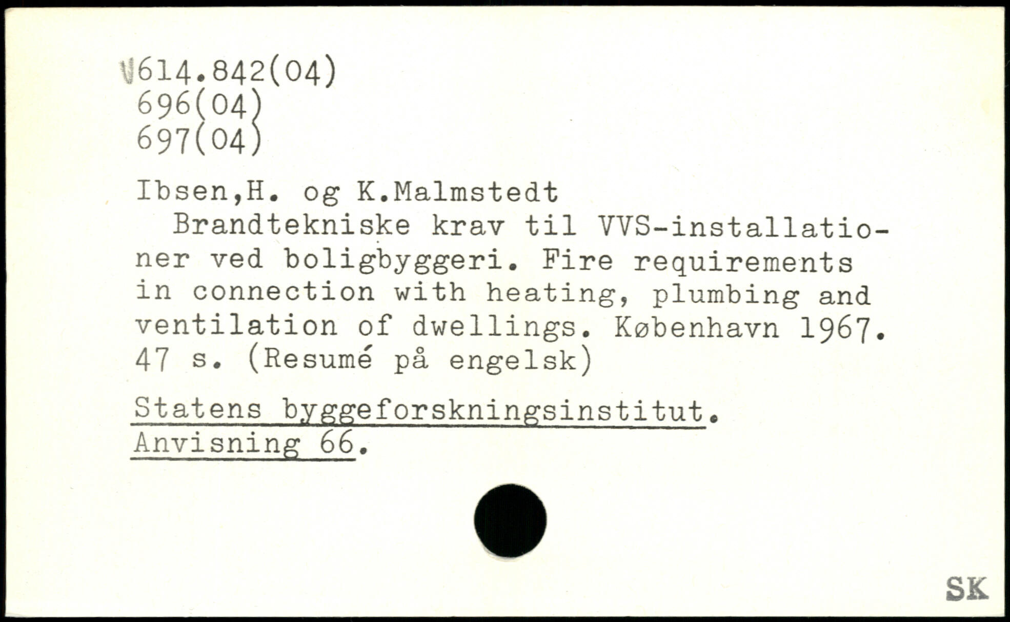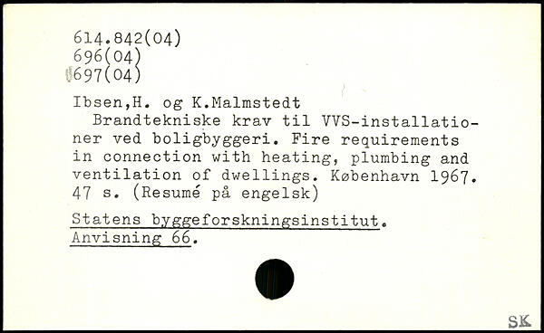 Brandtekniske krav til VYS-installatio-ner ved boligbyggeri. Fire requirements in connection with heating, plumbing and ventilation of dwellings.