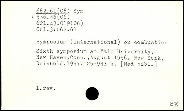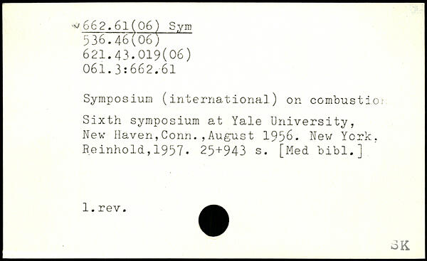 Symposium (international) on combustior. Sixth symposium at Yale University, \ New Haven,Conn.,August 1956.