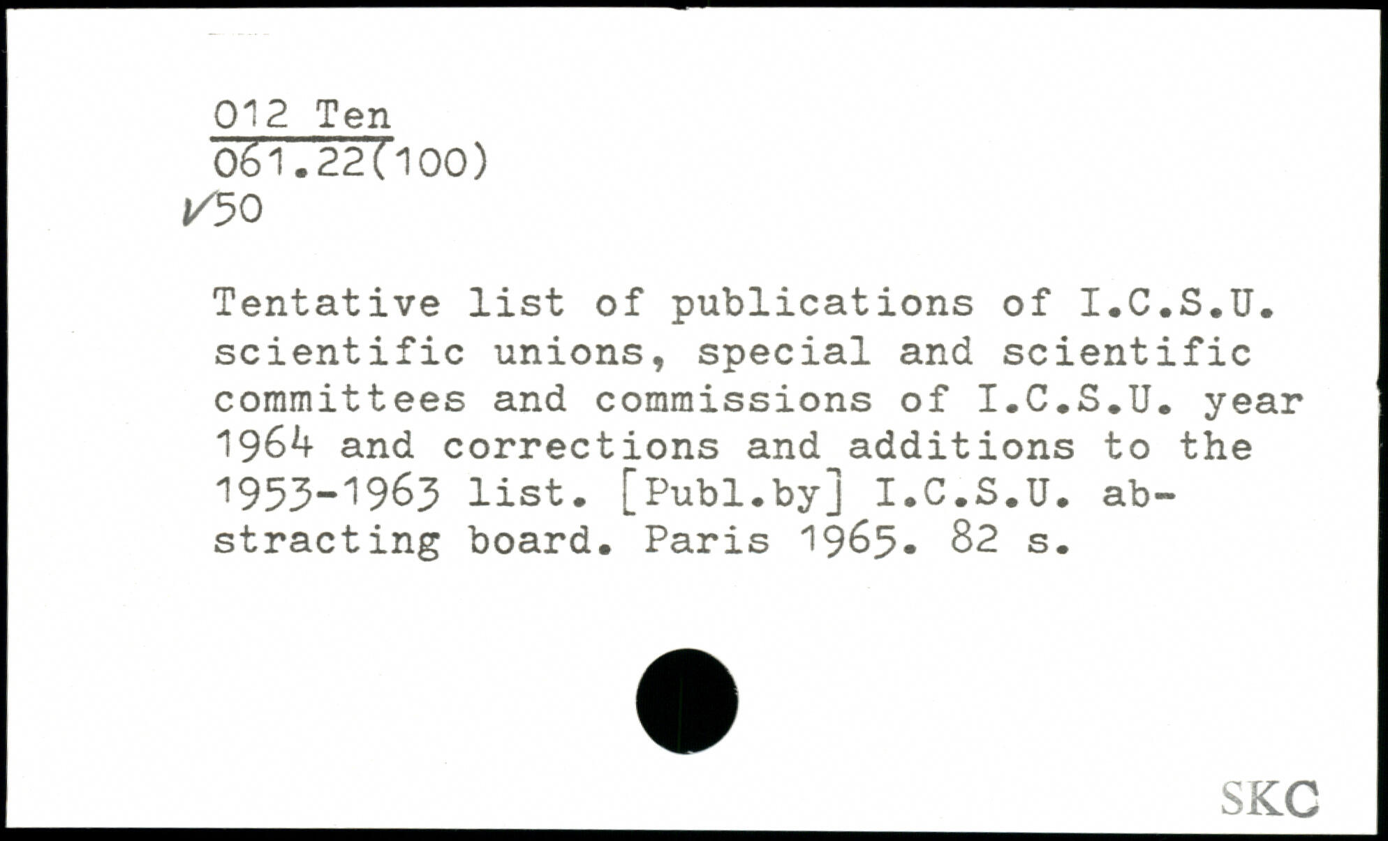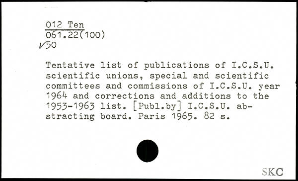 Tentative list of publications of I.C.S.U. scientific unions, special and scientific committees and commissions of I.C.S.U. year 196^ and corrections and additions to the 1953-1963 list.