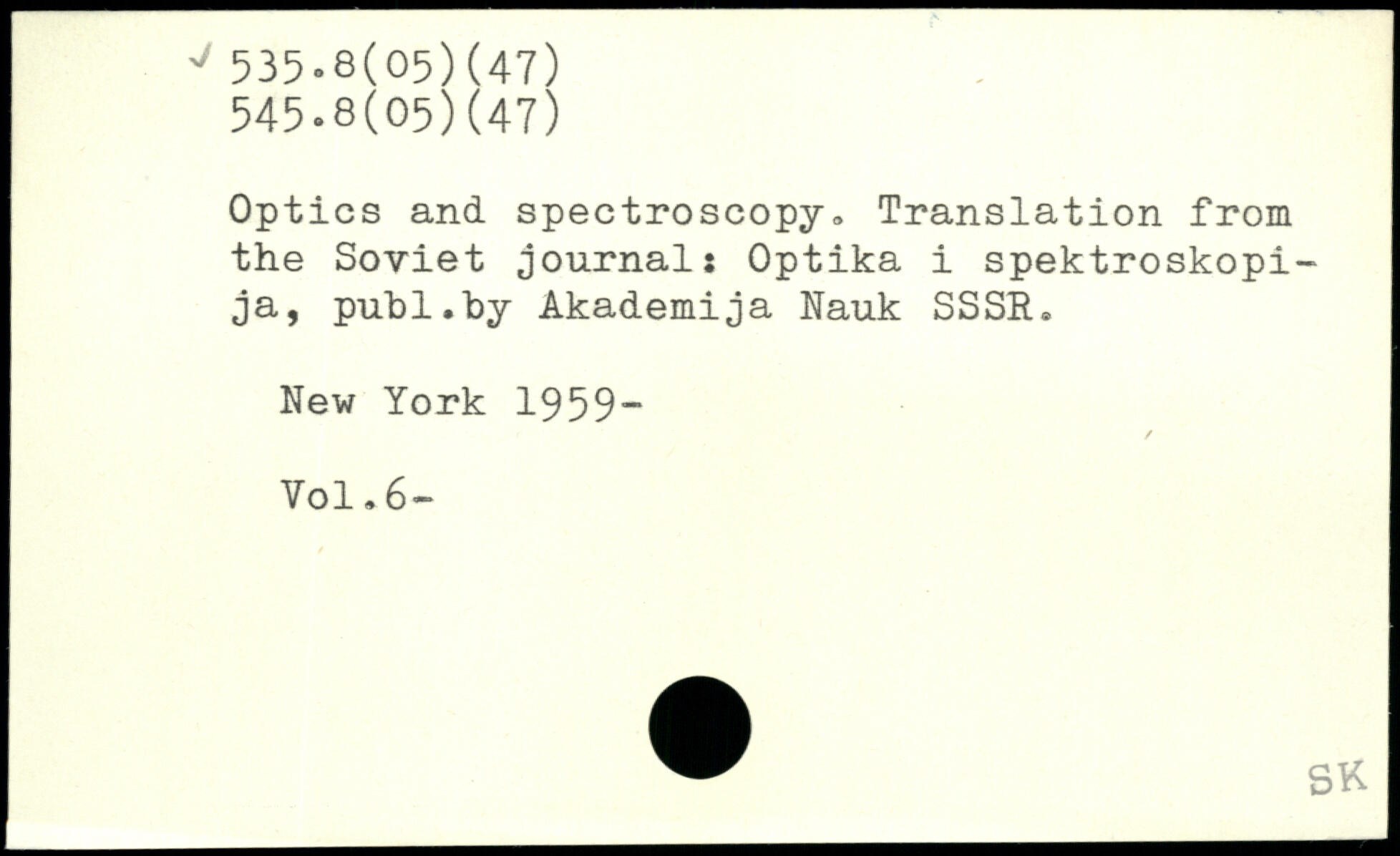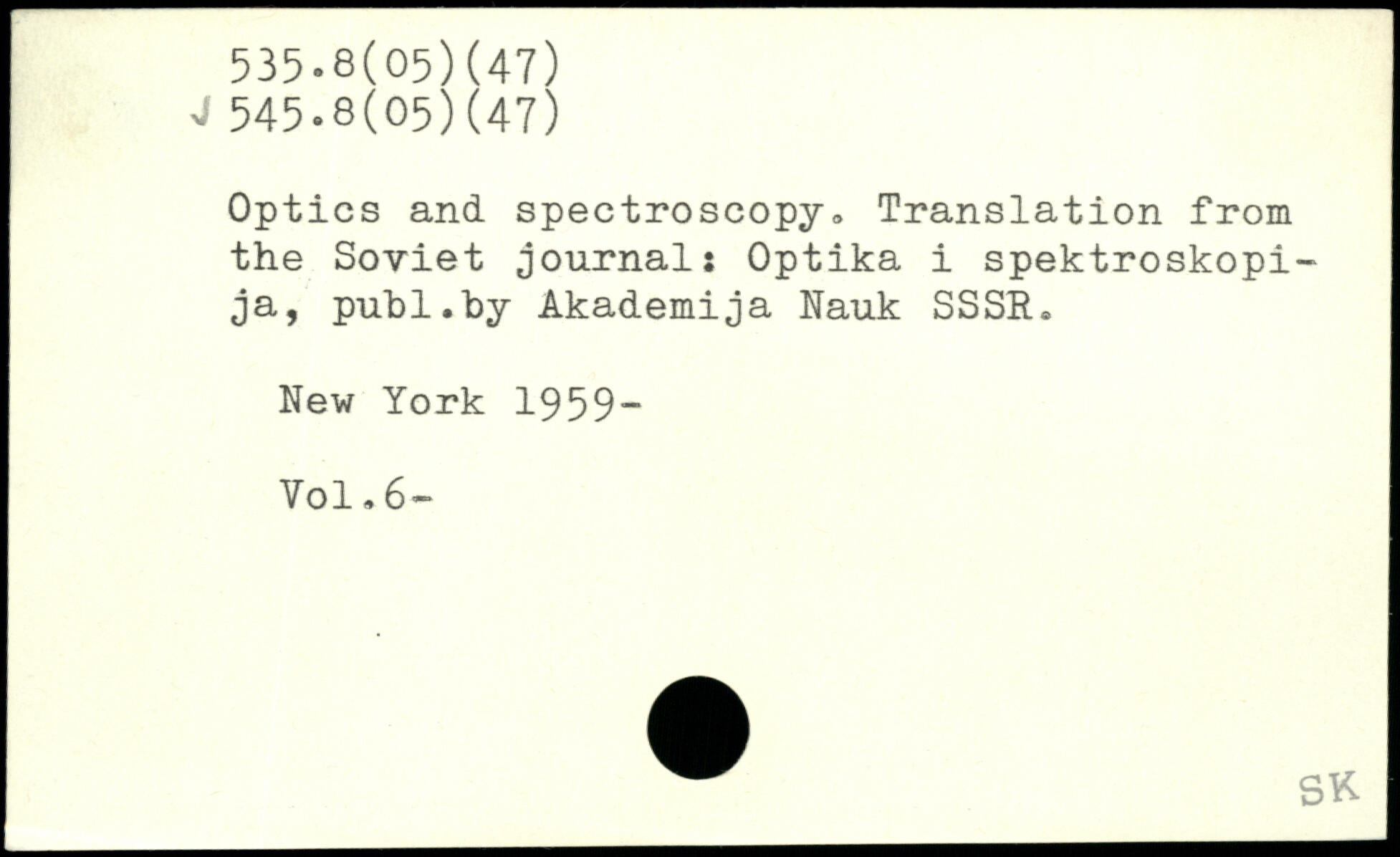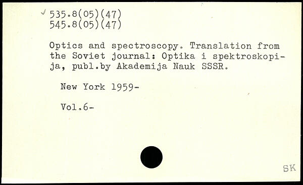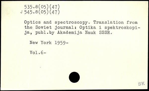 Optics and spectroscopy, Translation from the Soviet journal: Optika i spektroskopi-ja, publ.by Akademija Nauk SSSR.