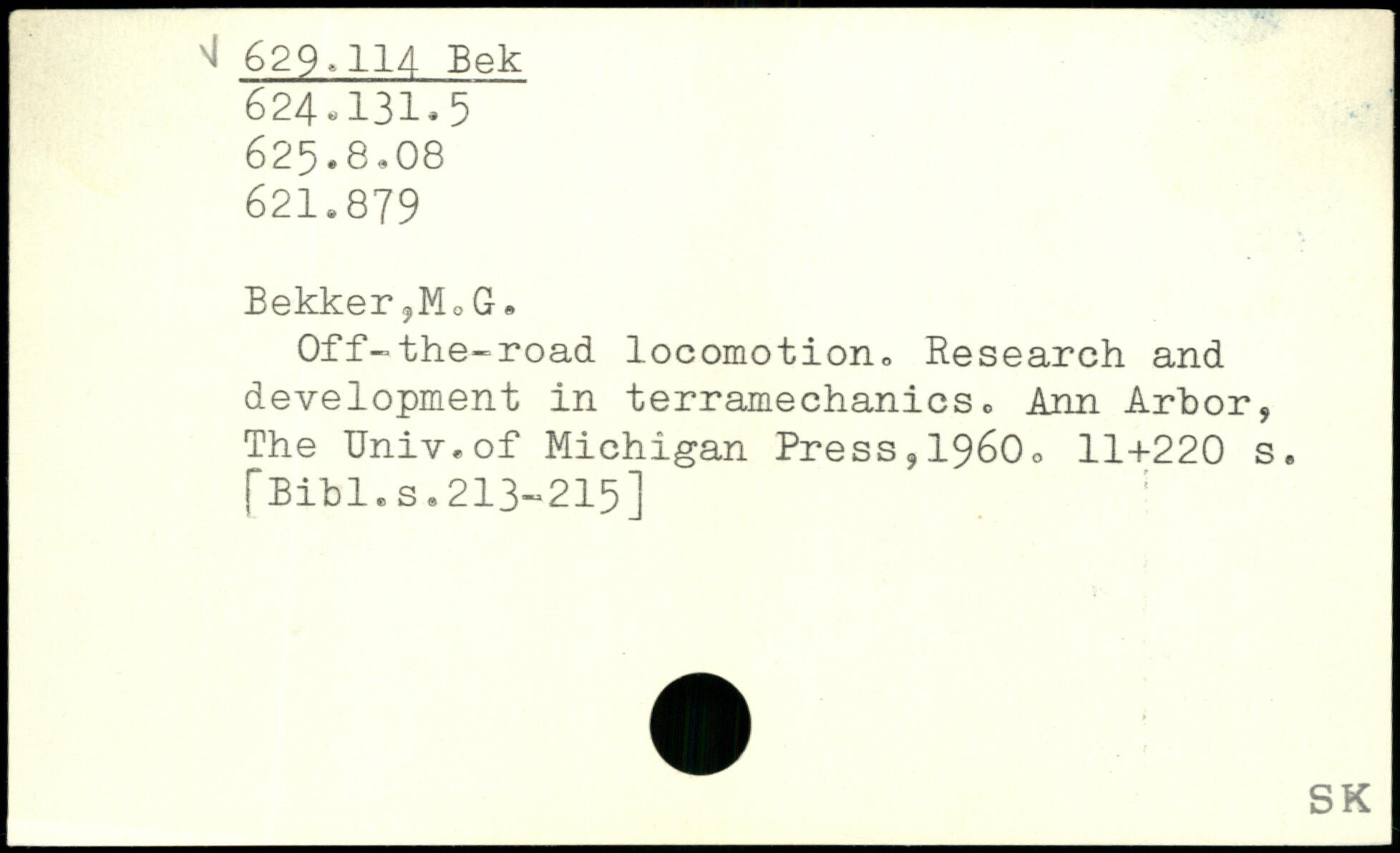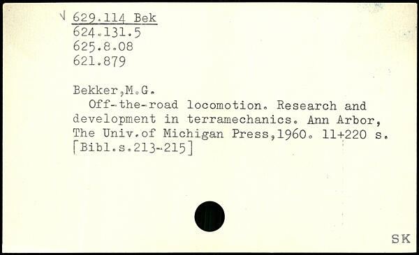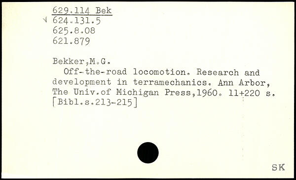 Off-the-road locomotion, Research and development in terramechanics, Ann Arbor, The Univ.of Michigan Press,19600