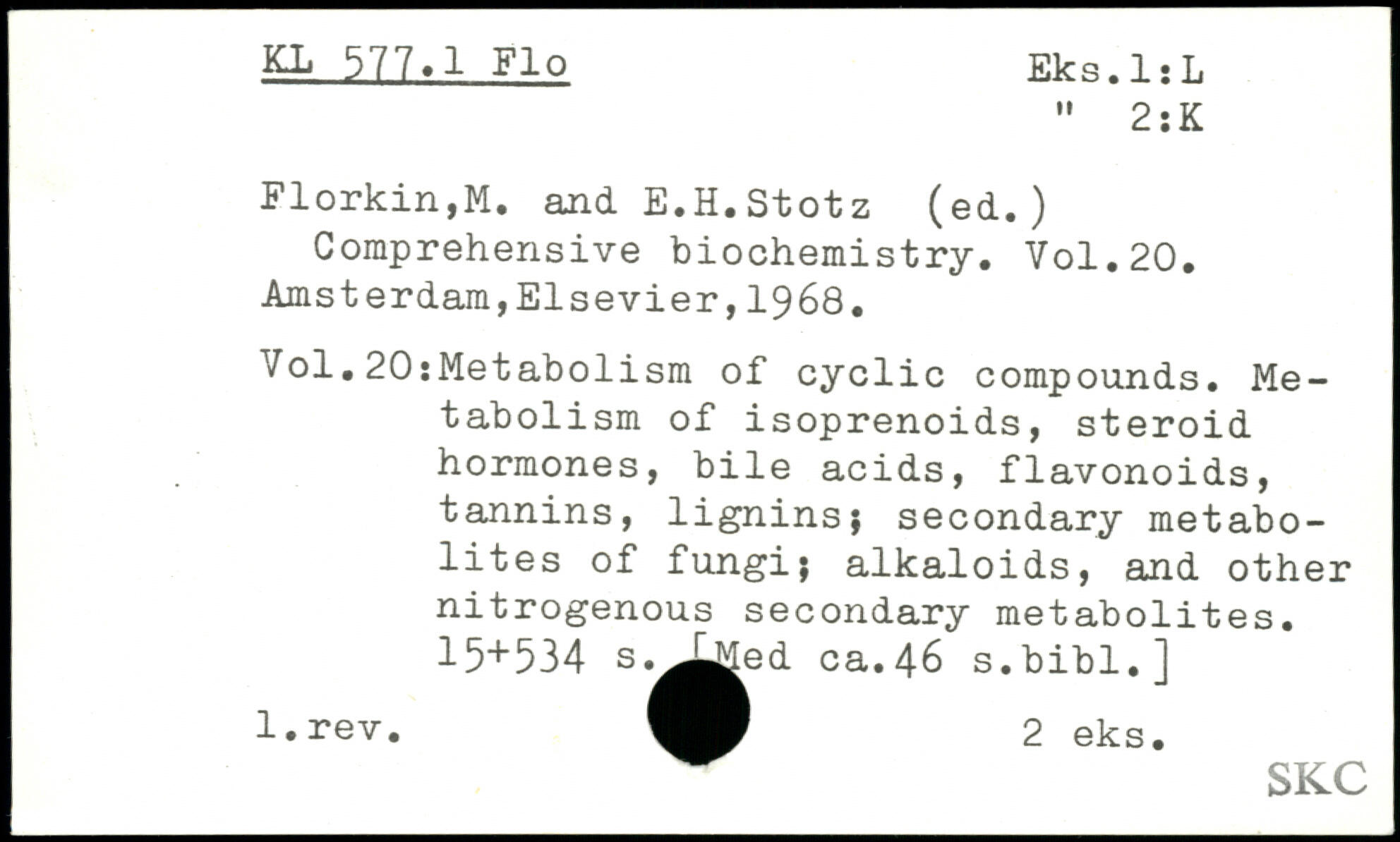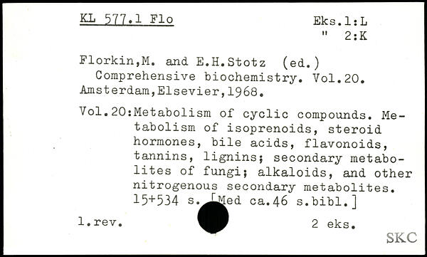 Florkin,M. andE.H.Stotz (ed.) Comprehensive biochemistry.