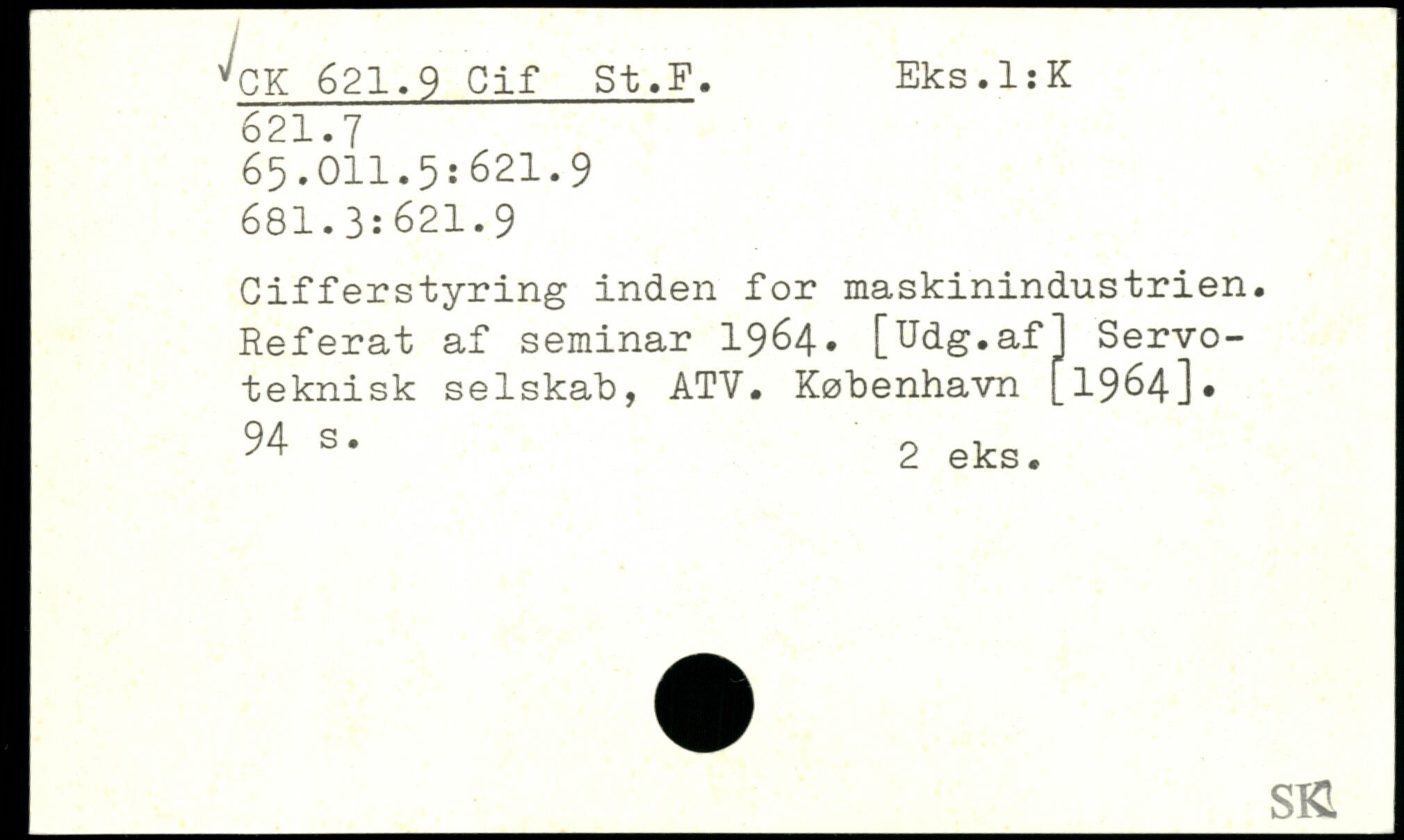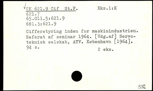 Cifferstyring inden for maskinindustrien. Referat af seminar 1964