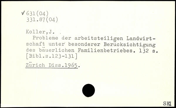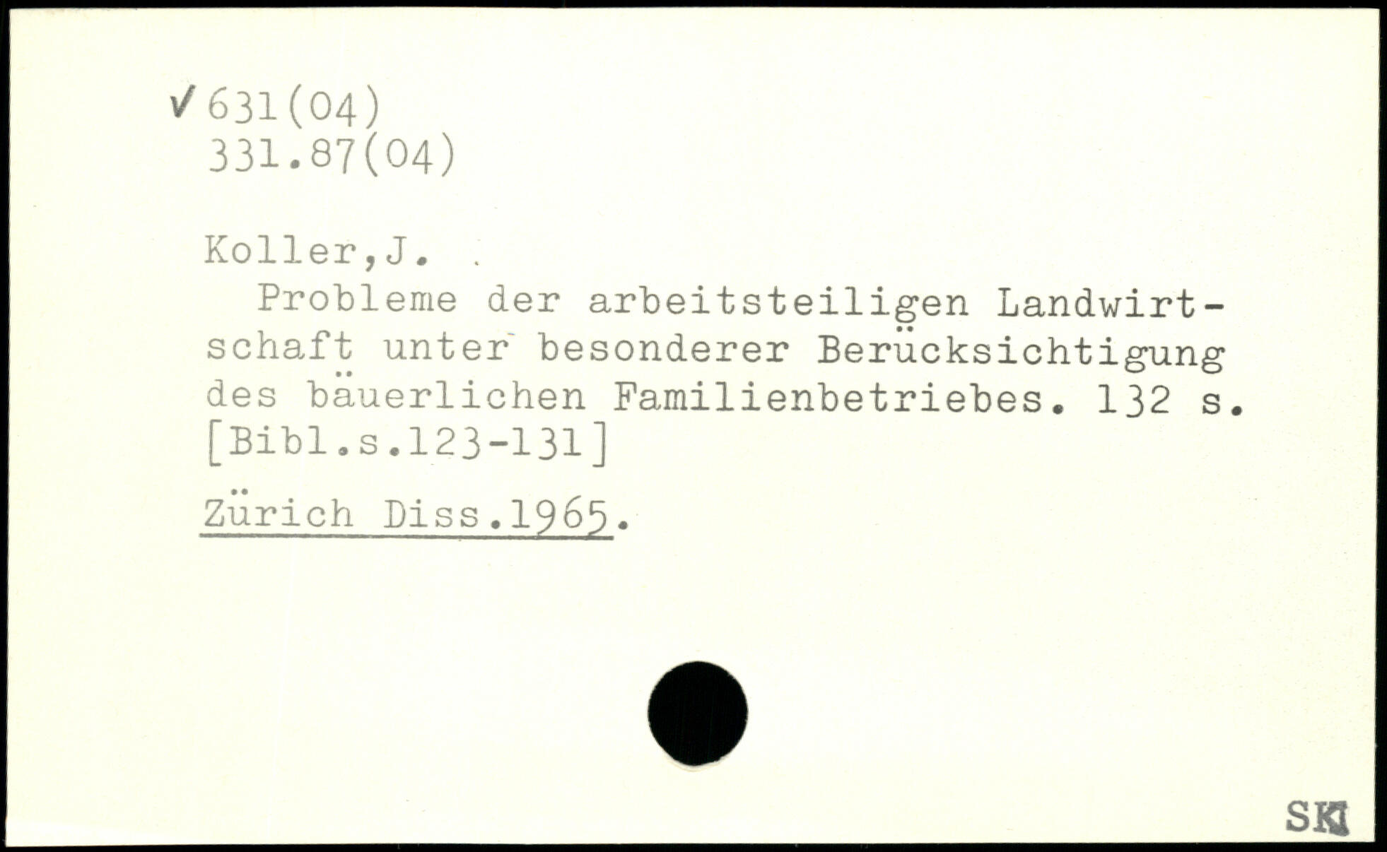 Probleme der arbeitsteiligen Landwirtschaft unter besonderer Berücksichtigung des bäuerlichen Familienbetriebes.