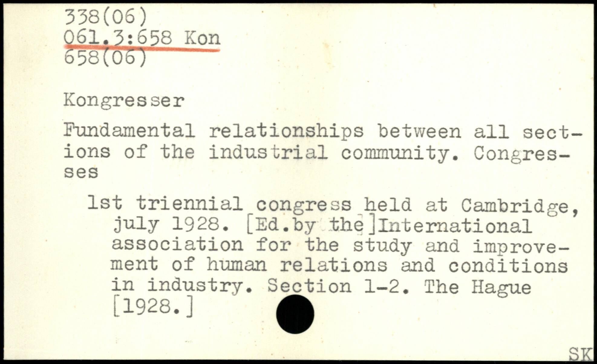 Fundamental relationships between all sections of the industrial community. Congresses 1st triennial^congress held at Cambridge, july 1928. [Ed.by the]International association for the study and improvement of human relations and conditions in industry. Section 1-2. The Hague