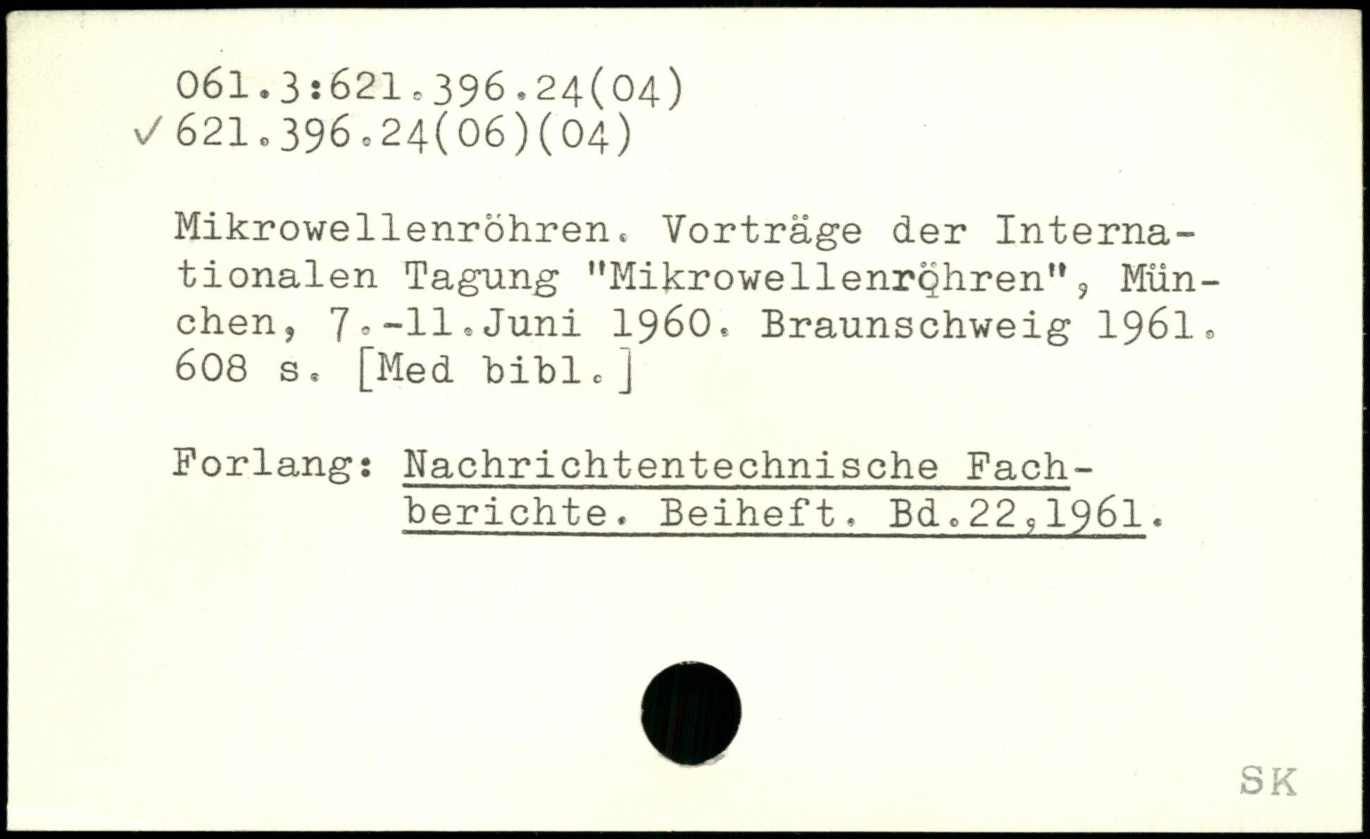 Mikrowellenröhren. Vorträge der Internationalen Tagung "MikrowellenrQhren"9 München, 7.-11.Juni 1960. Braunschweig 1961.