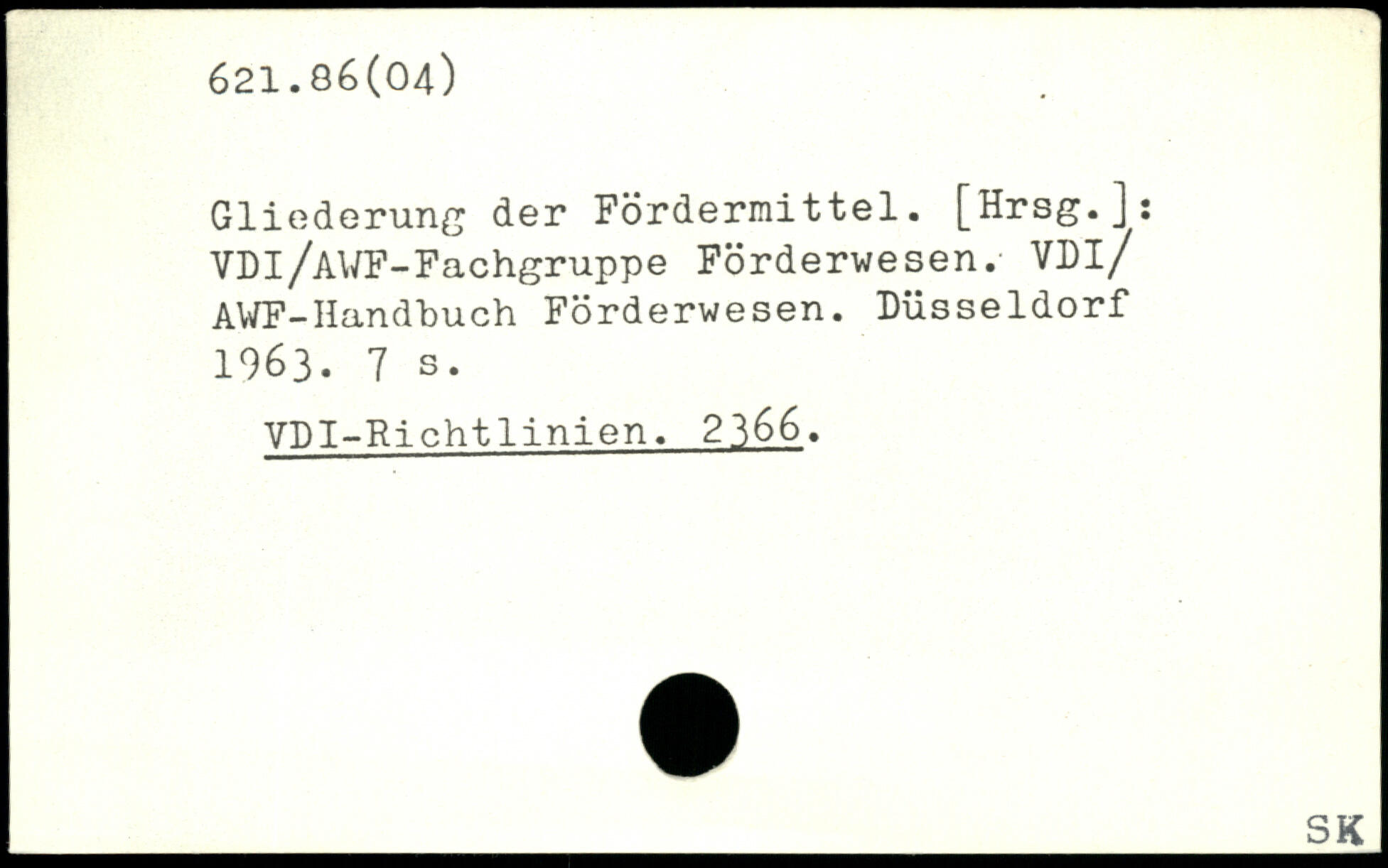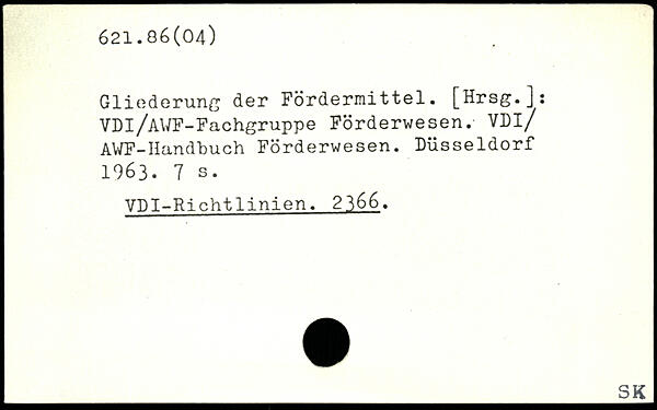 Gliederung der Fördermittel. [Hrsg.]: VDl/AWF-Fachgruppe Förderwesen. VDI/ AWF-Handbuch Förderwesen. Düsseldorf 1963.