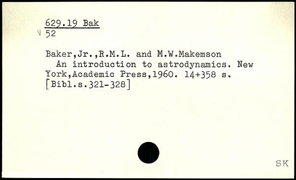 Baker,Jr.,R.M.L. and M.W.Makemson An introduction to astrodynamics.