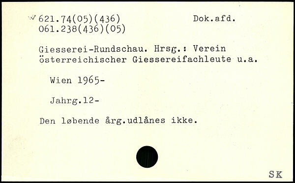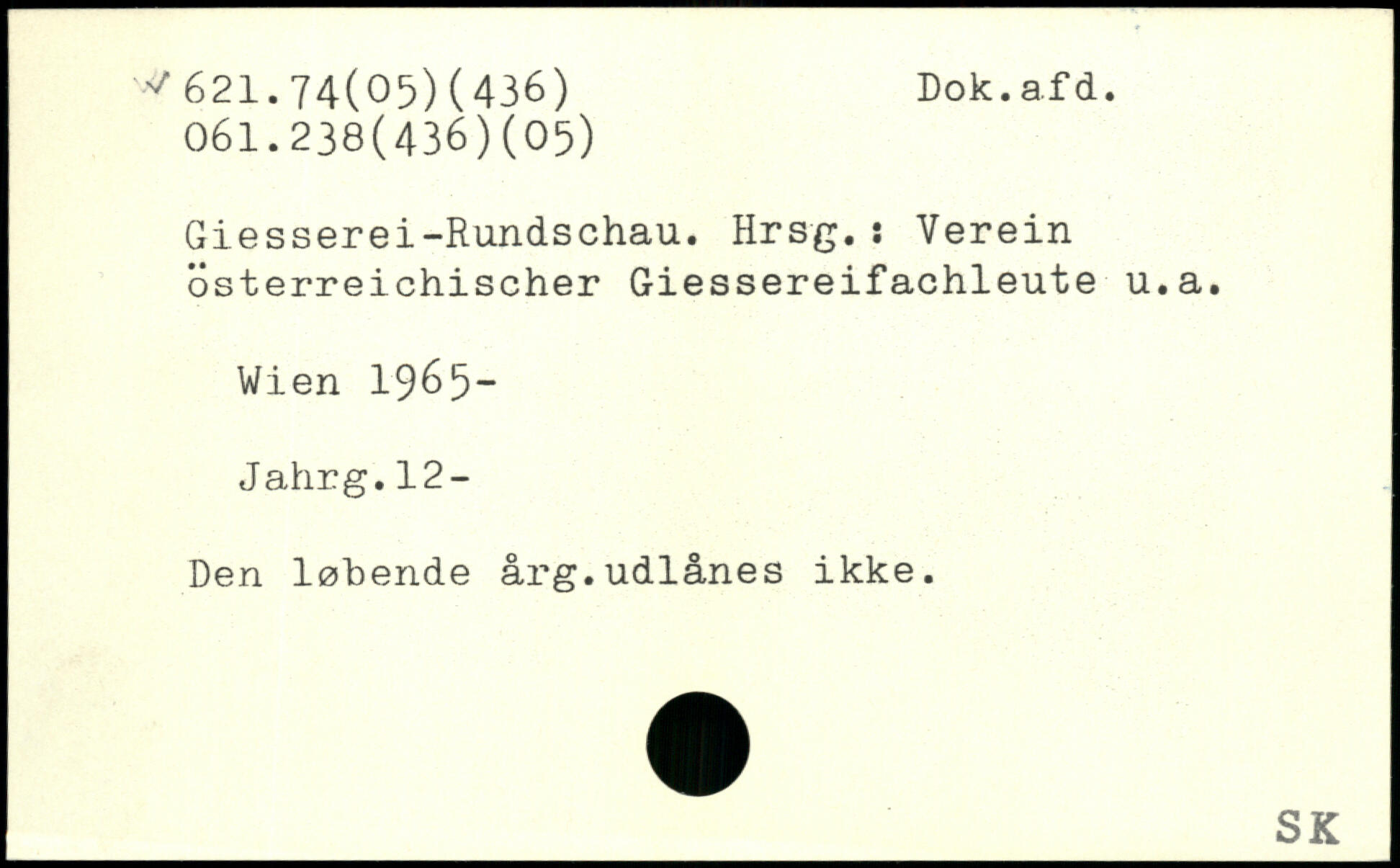 Giesserei-Rundschau. Hrsg,i Verein österreichischer Giessereifachleute u.a. Wien 196 5 — Jahrg.12- Den løbende årg.udlånes ikke.