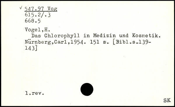 Das Chlorophyll in Medizin und Kosmetik. Nürnberg,.Carl, 1954, 151 a-.
