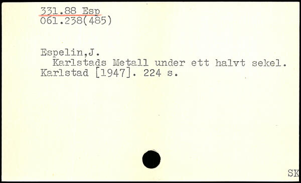 Karlstads Metall under ett halvt sekel. Karlstad [1947].