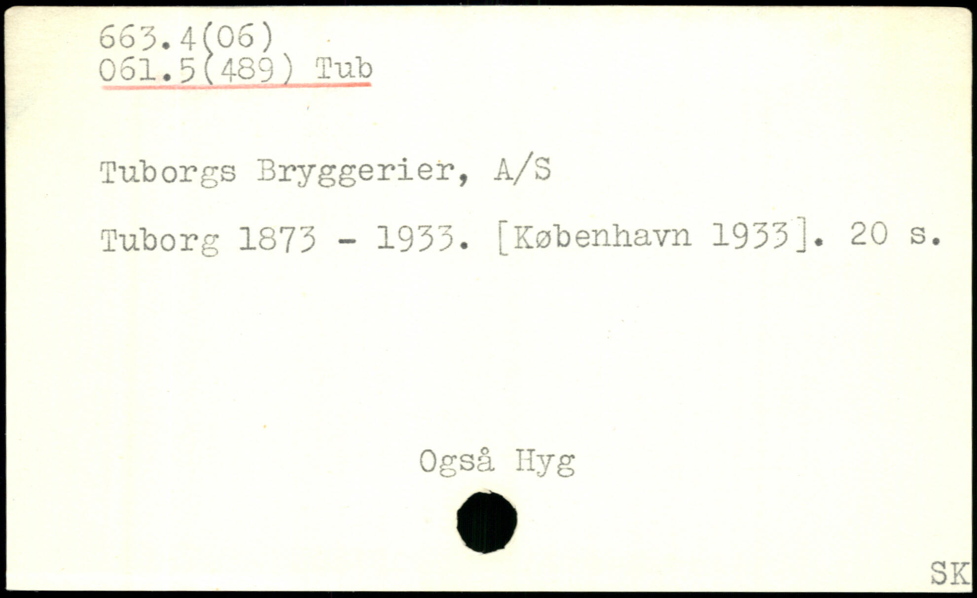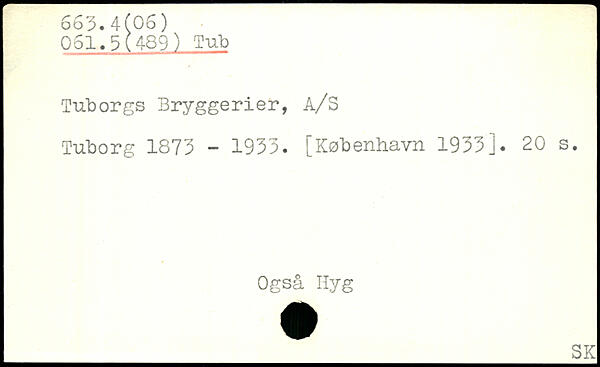 Tuborgs Bryggerier, A/S Tuborg 1873 - 1933.