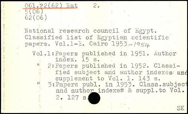 National research council of Egypt. Classified list of Egyptian scientific papers.