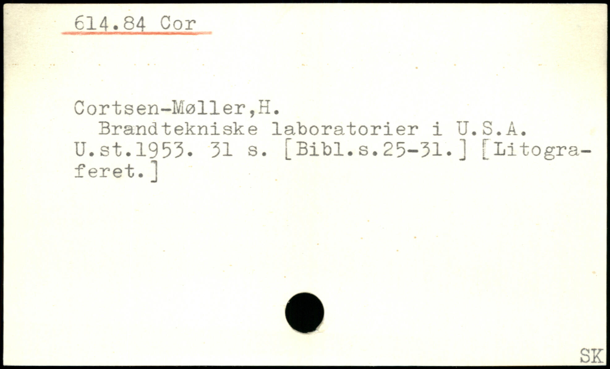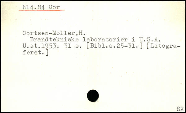Brandtekniske laboratorier i U.S.A. U.st.1953.