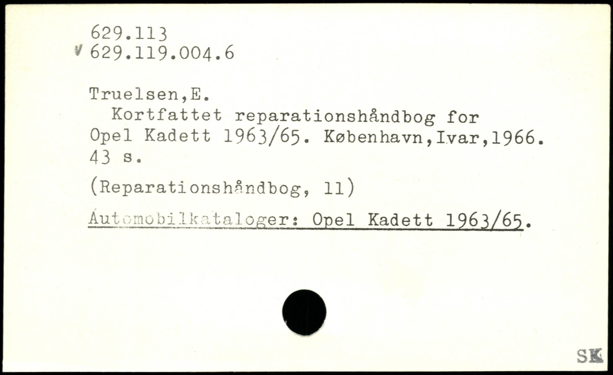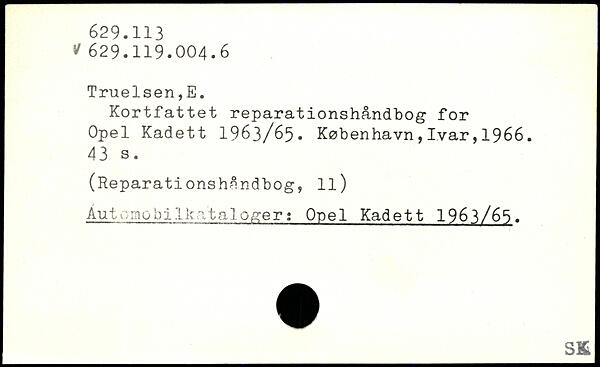 Kortfattet reparationshåndbog for Opel Kadett 1963/65.