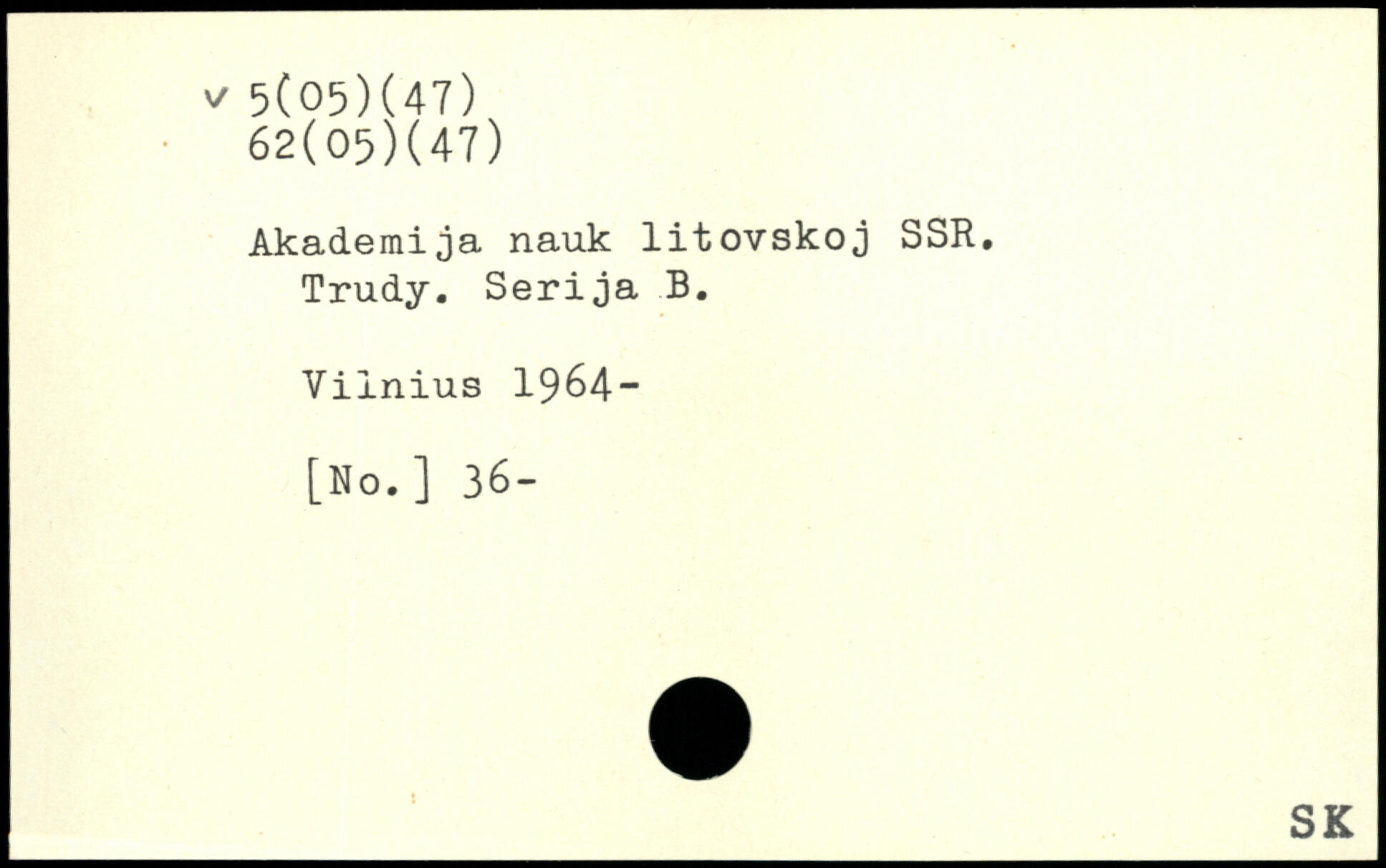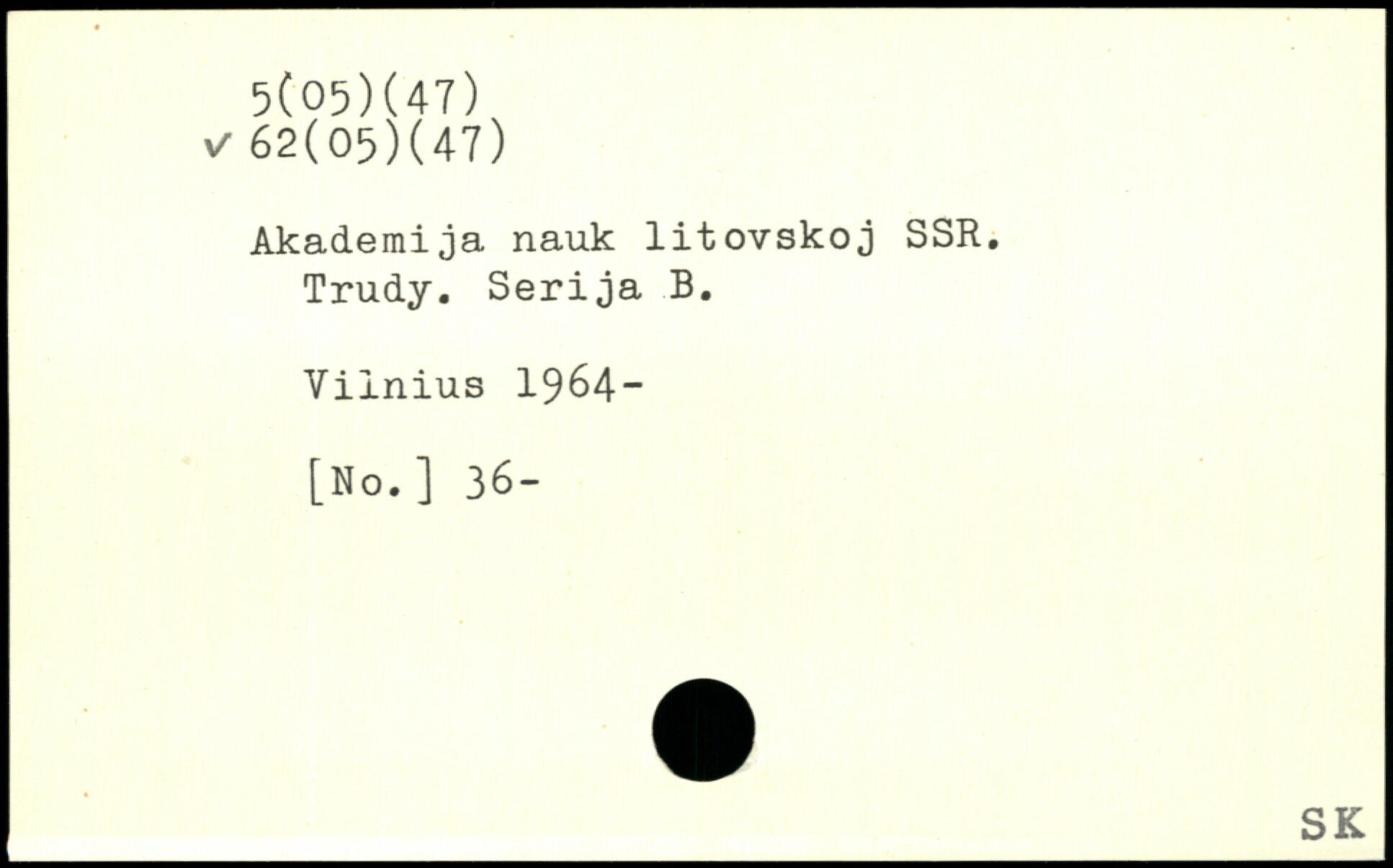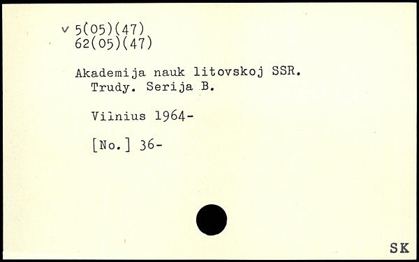 Akademi ja nauk litovskoj SSR. Trudy. Serija B. Vilnius 1964- [No.] 36-