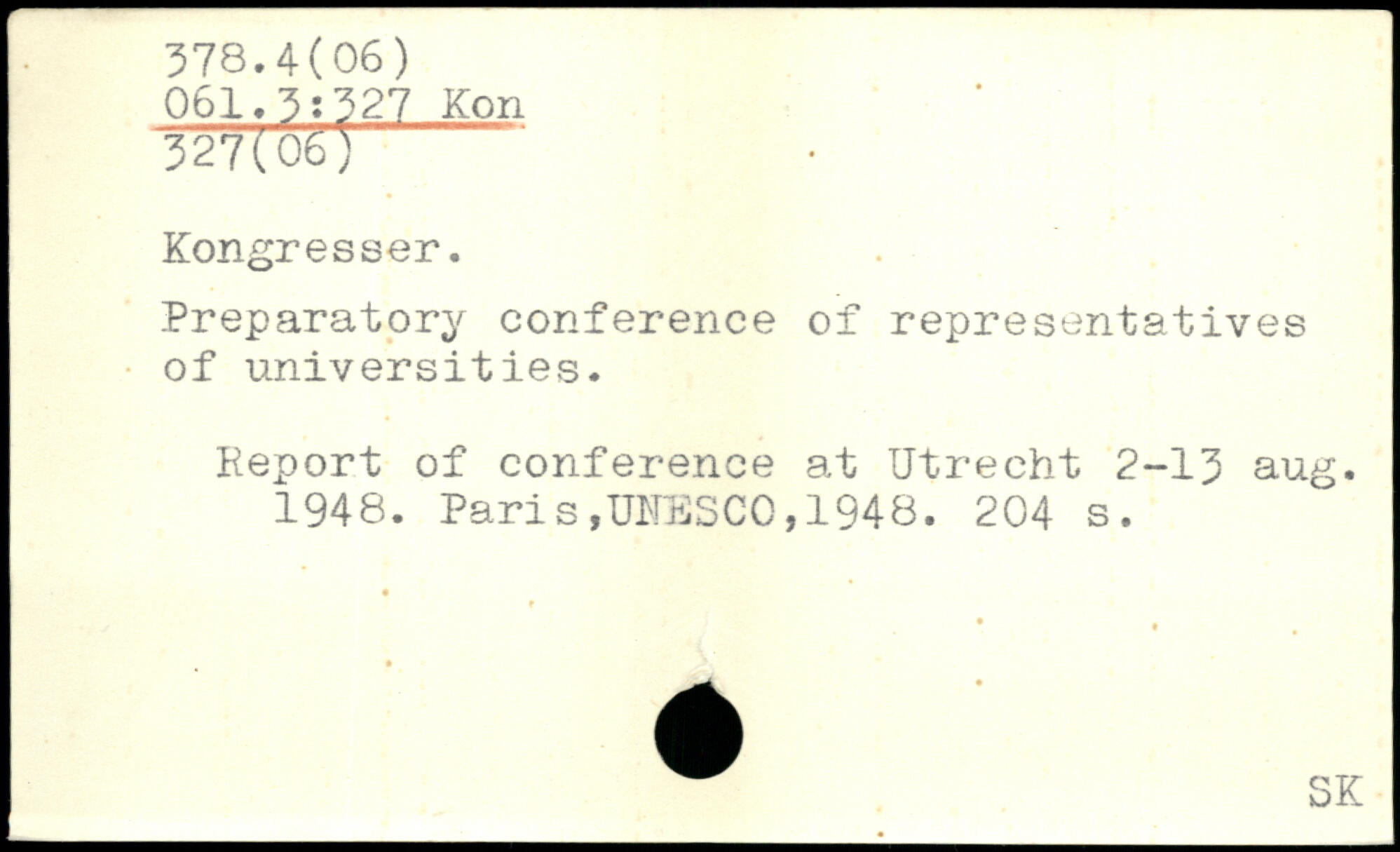 Preparatory conference of representatives of universities. Report of conference at Utrecht 2-13 aug. 1948.