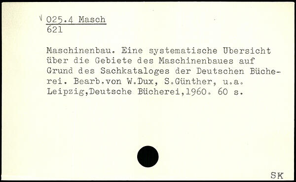 Maschinenbau. Eine systematische Übersicht über die Gebiete des Maschinenbaues auf Grund des Sachkataloges der Deutschen Bücherei. Bearb.von W.Dux, S0Günther, u,a.