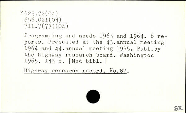 Programming- and needs 1.963 and. 1964. 6 reports. Presented at the 43.annual meeting 1964 and 44.annual meeting 1965.