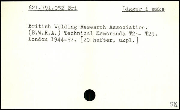 British Welding Research Association. (B.WcRoA.) Technical Memoranda T2~- T29.