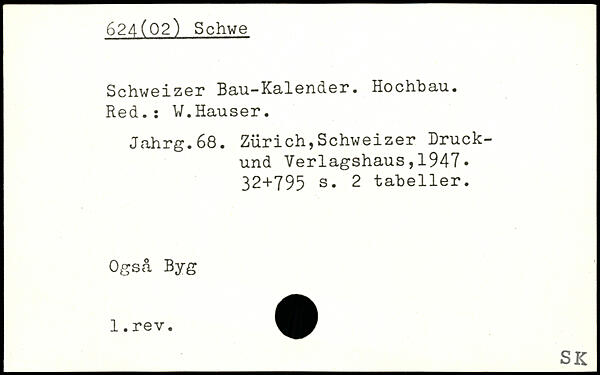 Schweizer Bau-Kalender. Hochbau. Red.: W.Hauser. Jahrg.68.