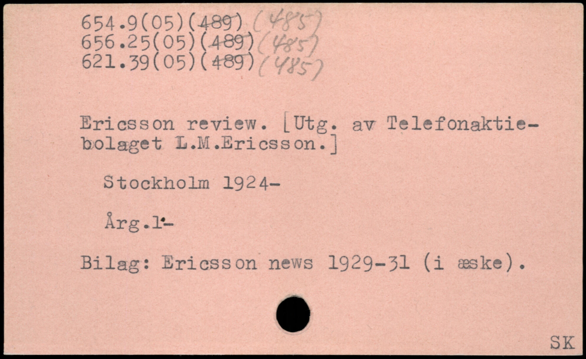 Ericsson review. [Utg. av Telefonaktiebolaget L.M.Ericsson. ] Stockholm 192 4- Årg.1- Bilag: Ericsson news 1929-31 (i æske).