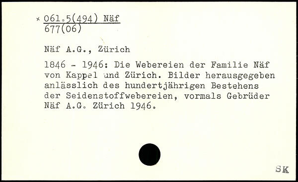 1846 - 1946: Die Webereien der Familie Näf von Kappel und Zürich. Bilder herausgegeben anlässlich des hundertjährigen Bestehens der Seidenstoffwebereien, vormals Gebrüder Näf A.Go Zürich 1946a