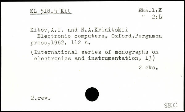 Forfatter: A.I. Kitov, N.A. Krinitskii