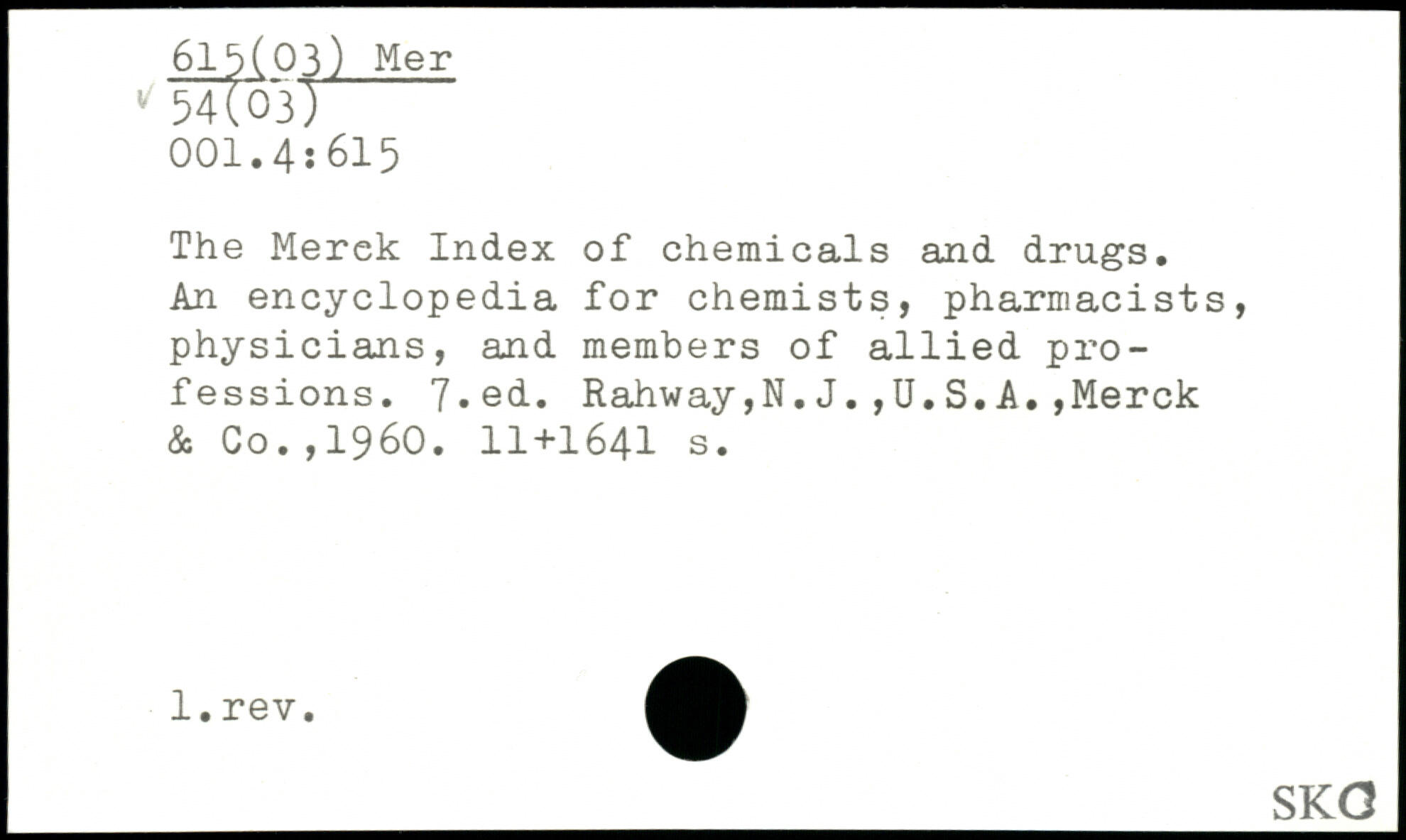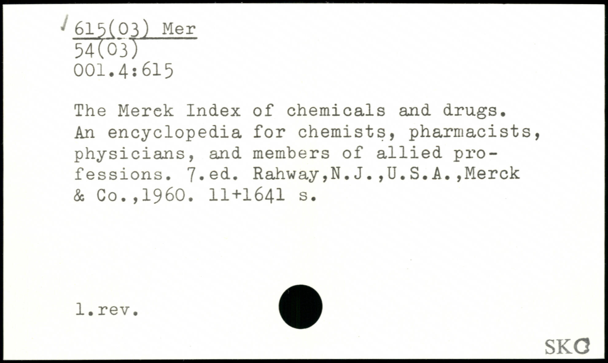 The Merek Index of chemicals and drugs. An encyclopedia for chemists, pharmacists, physicians, and members of allied professions.