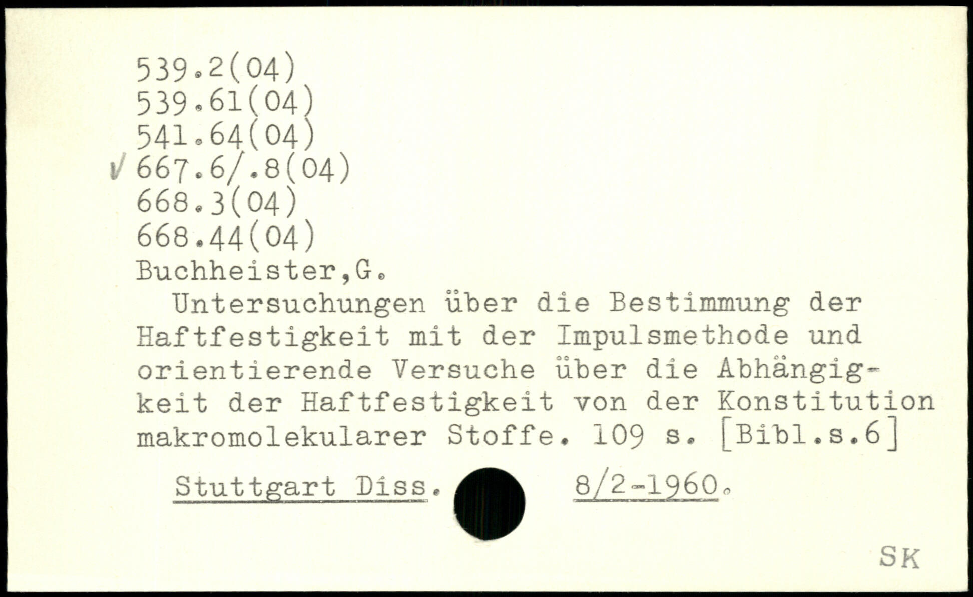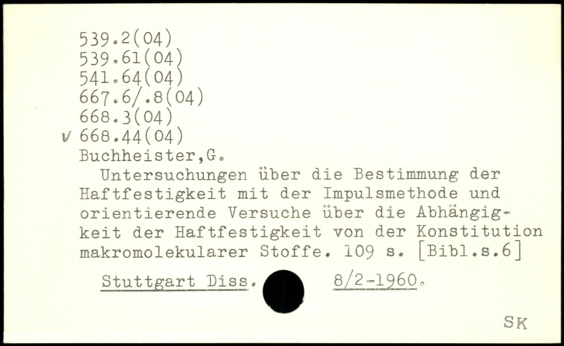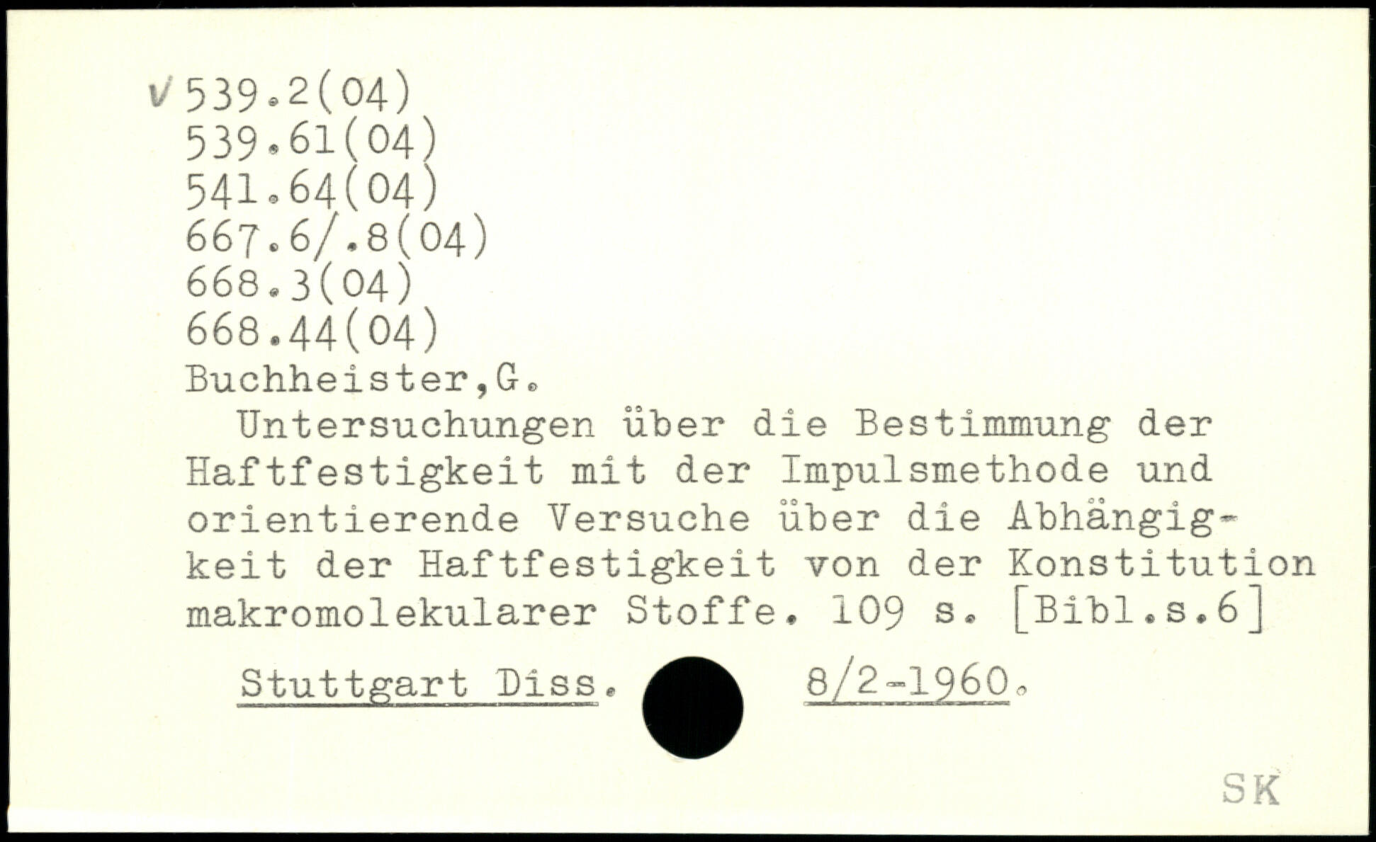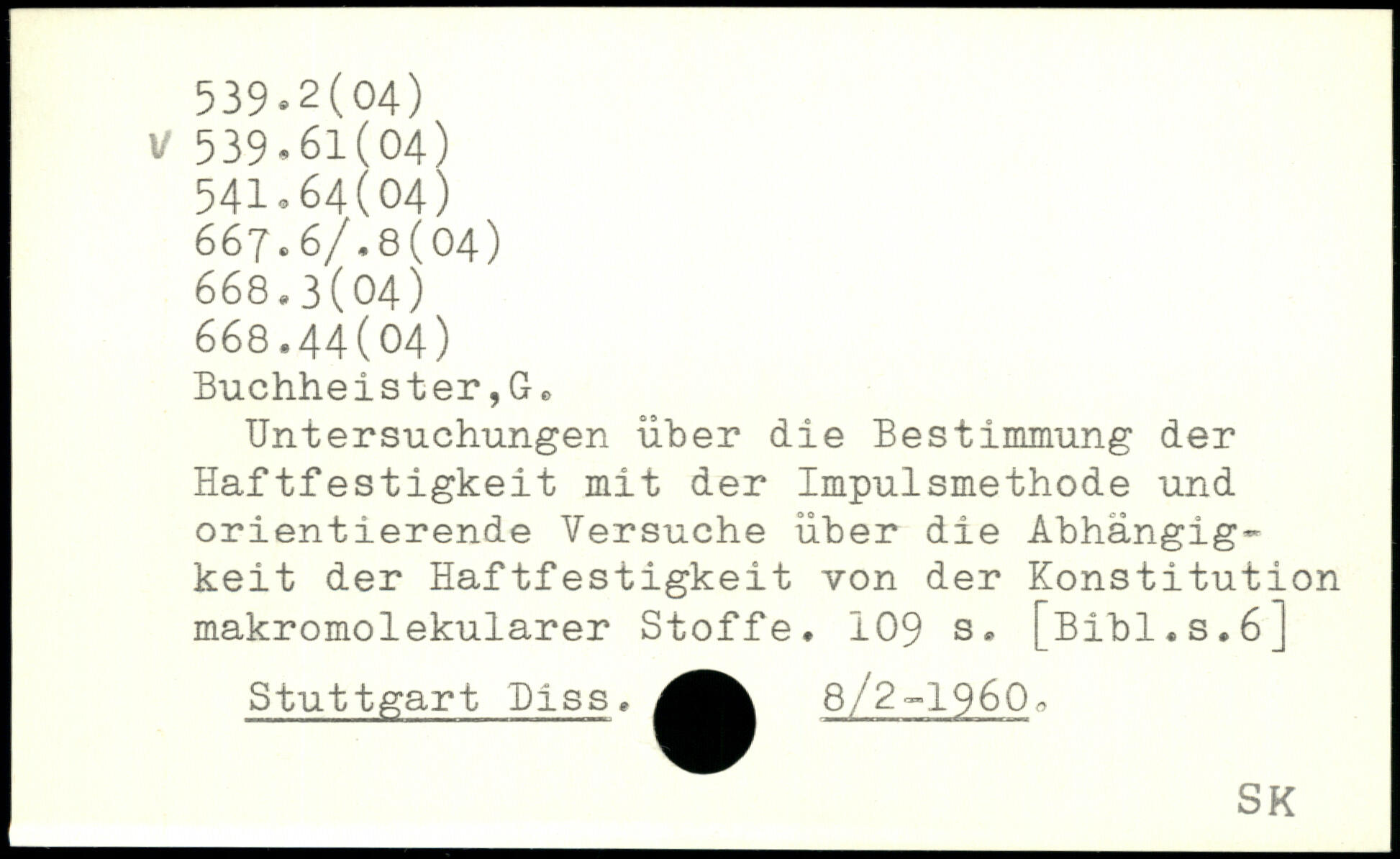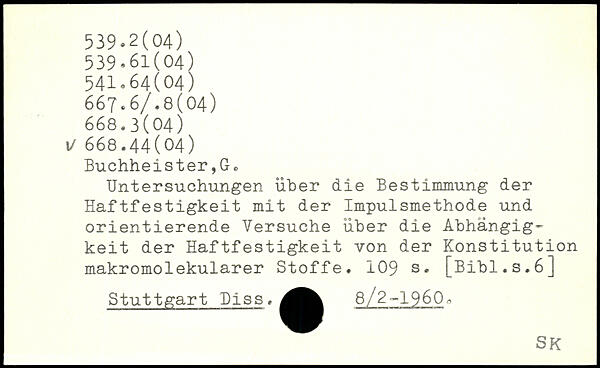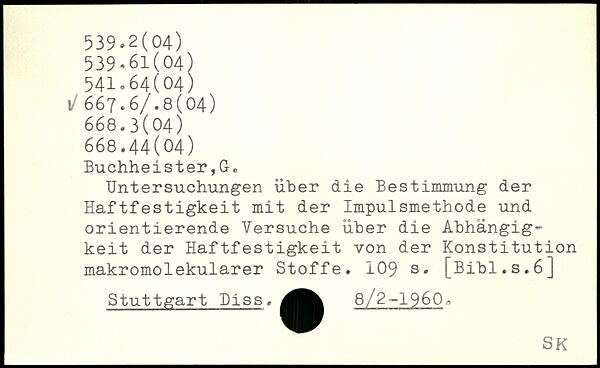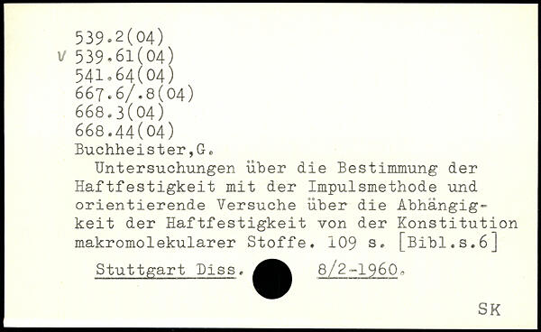 Untersuchungen über die Bestimmung der Haftfestigkeit mit der Impulsmethode und orientierende Versuche über die Abhängigkeit der Haftfestigkeit von der Konstitution makromolekularer Stoffe