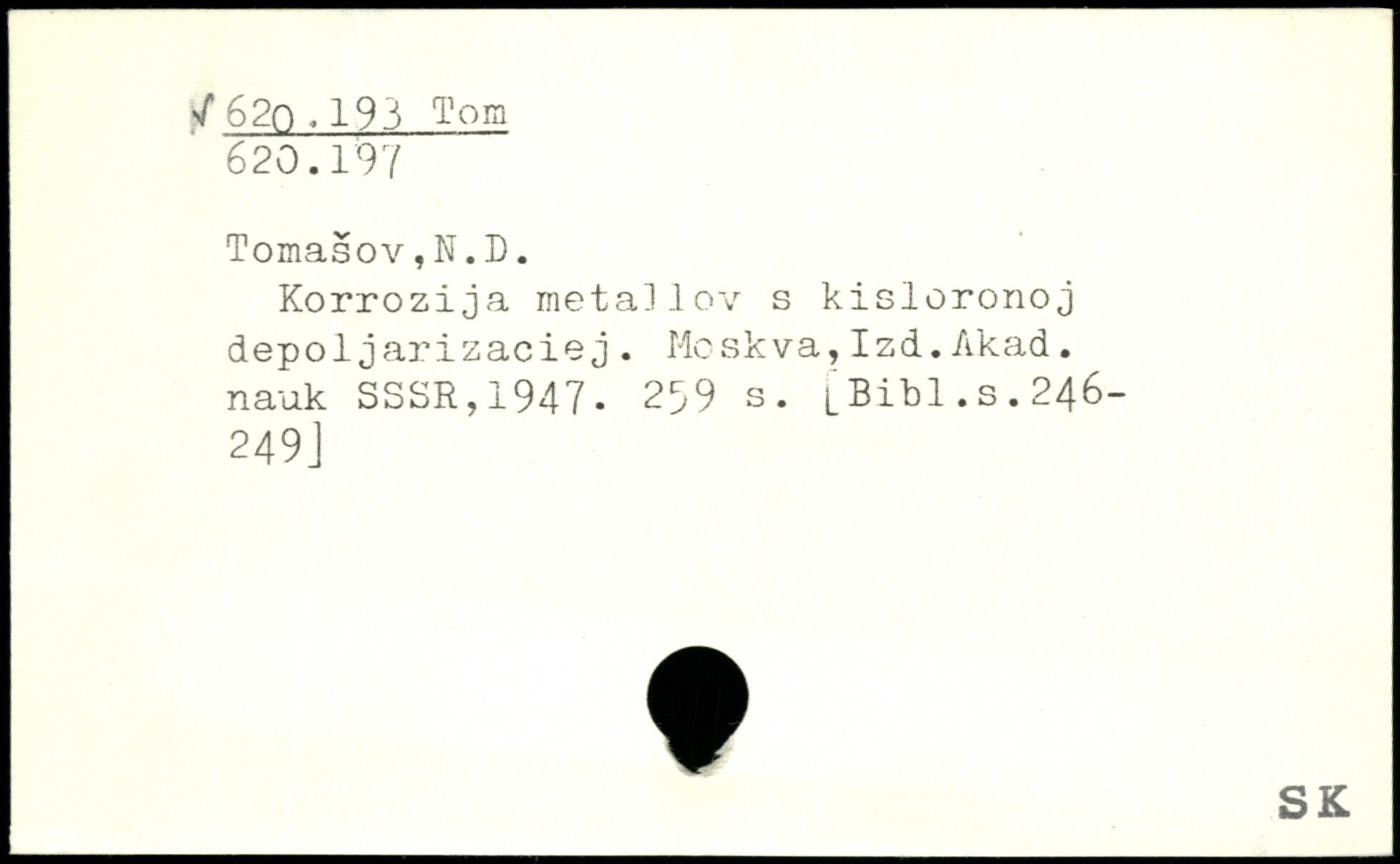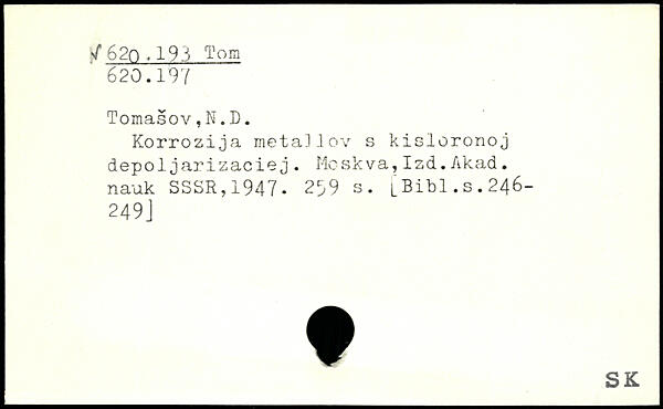 Korrozija metallov s kisloronoj depoljarizaciej. Moskva,Izd.Akad. na-ok SSSR,1947.