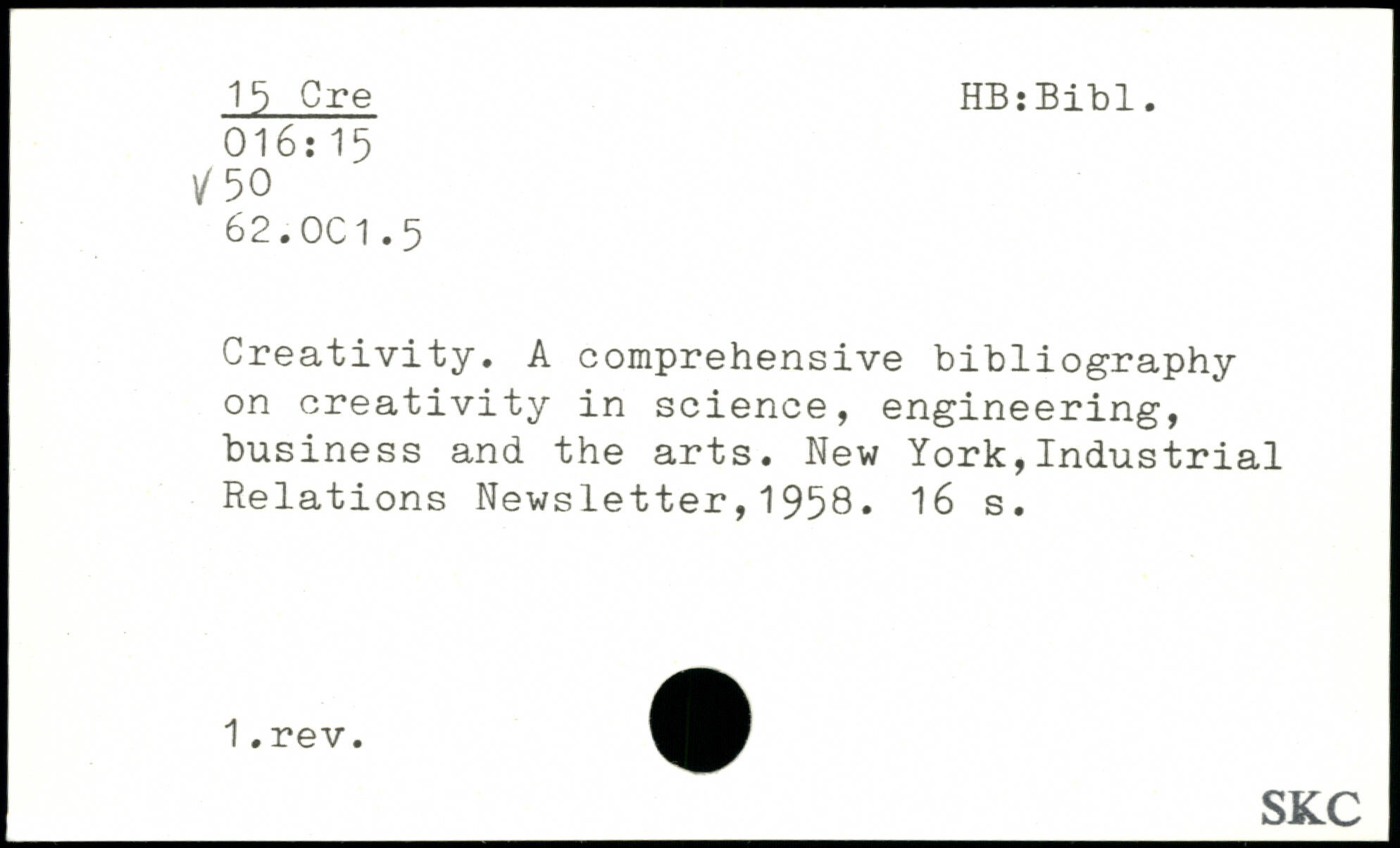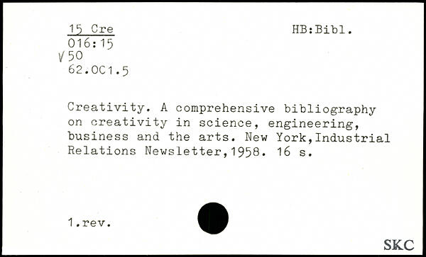 Creativity. A comprehensive bibliography on creativity in science, engineering, business and the arts.
