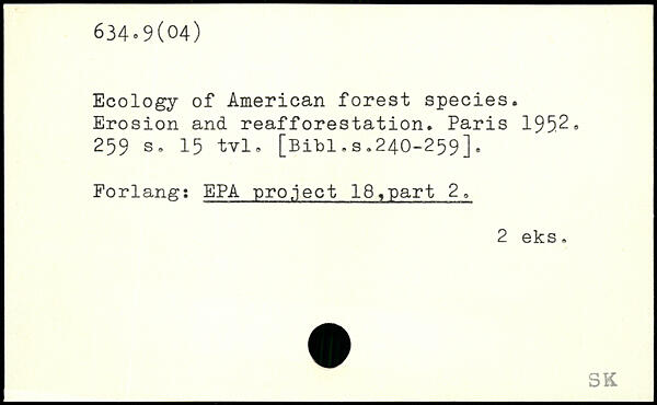 Ecology of American forest species. Erosion and reafforestation. Paris 195.2.