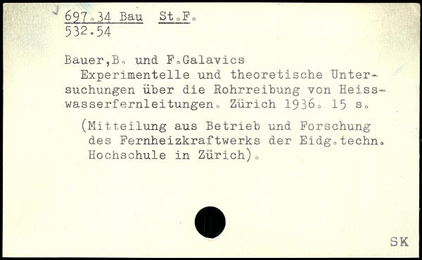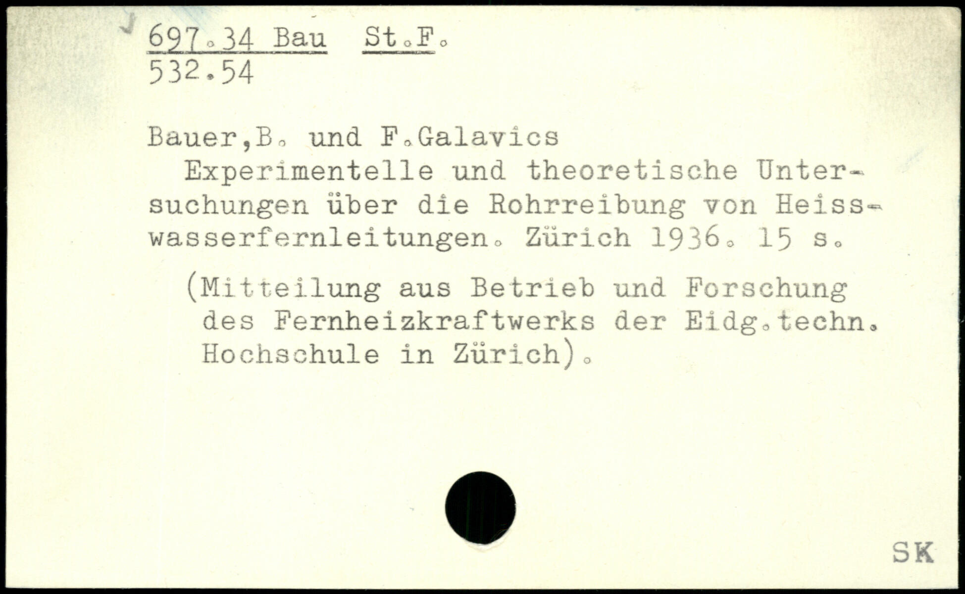 Bauer,B, und Fr,Galavics Experimentelle und theoretische Untersuchungen über die Rohrreibung von Heiss-wasserfernleitungeno Zürich 1936o