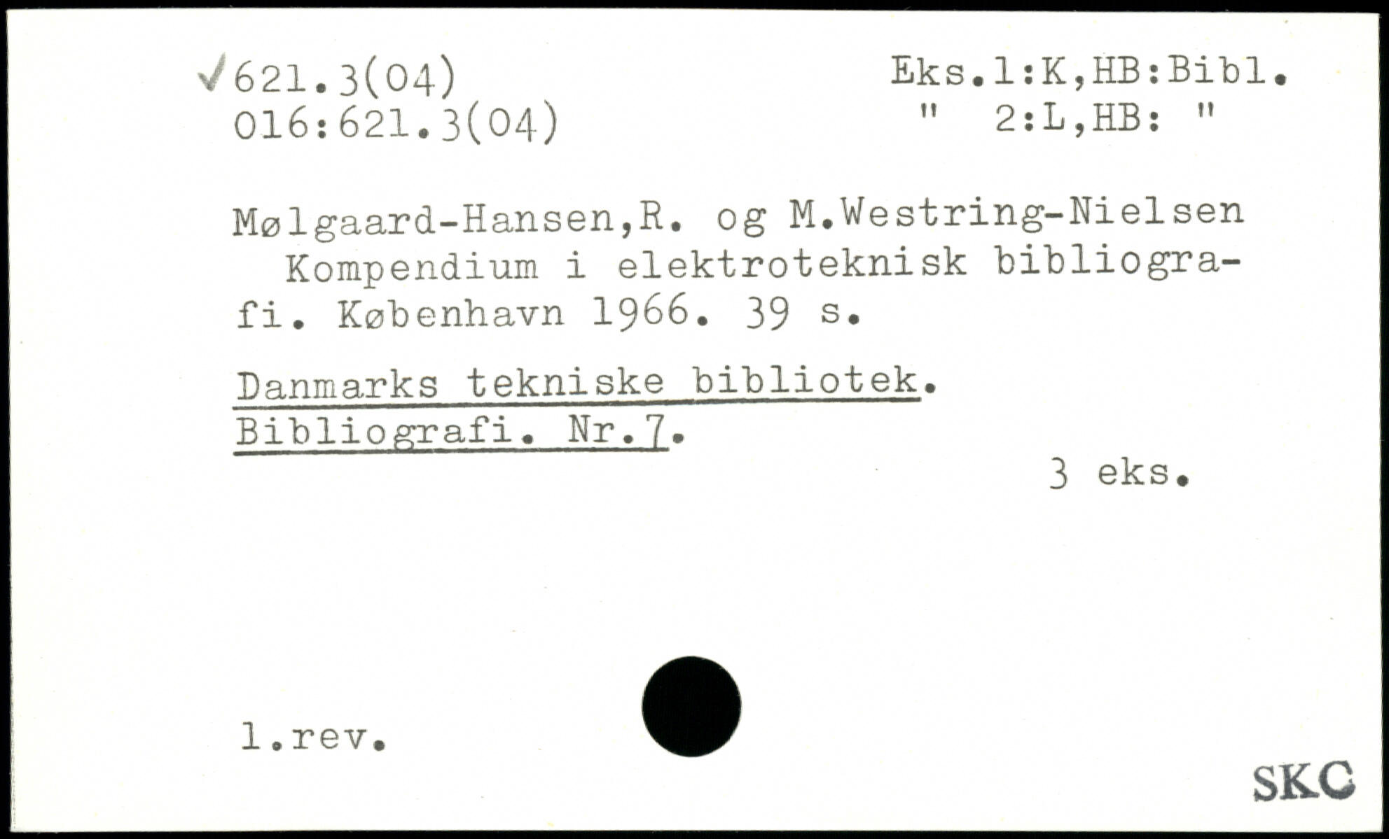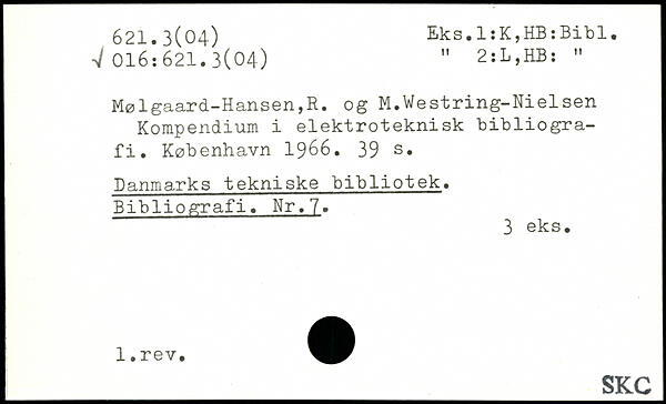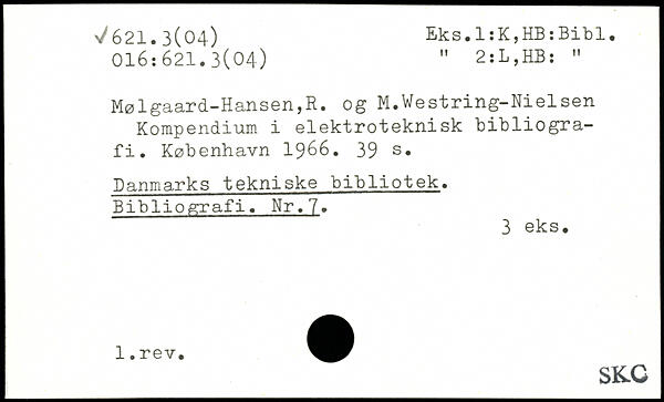 Mølgaard-Hansen,R. og M.Westring-Nielsen Kompendium i elektroteknisk bibliografi.