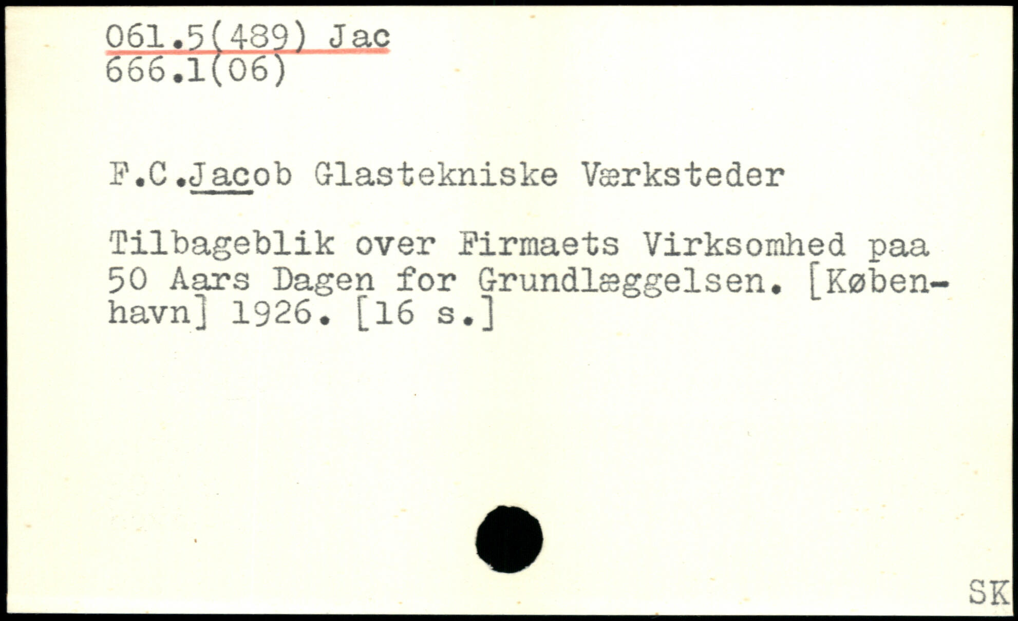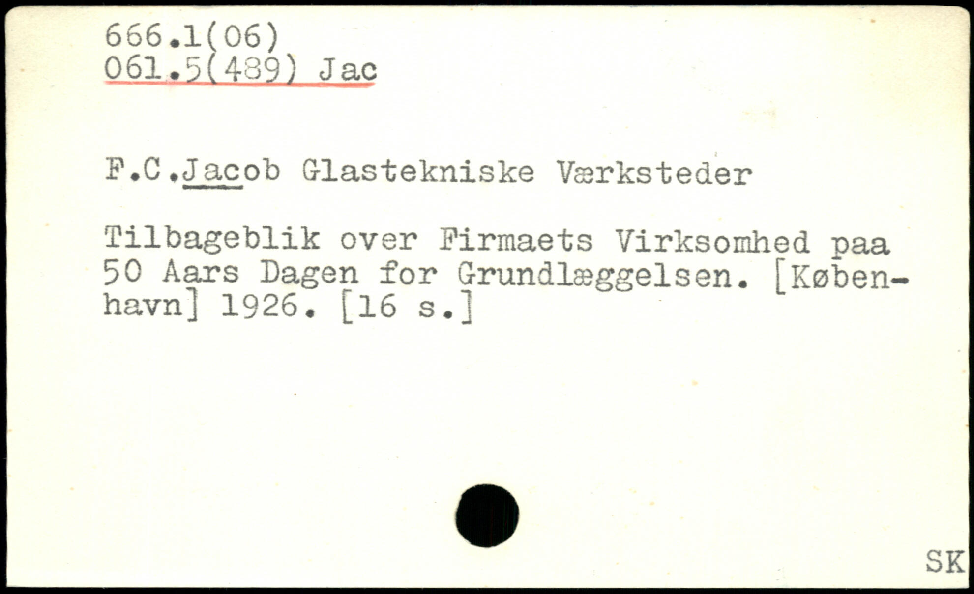 P.C .Jacob Glastekniske Værksteder Tilbageblik over Firmaets Virksomhed paa 50 Aars Dagen for Grundlæggelsen.