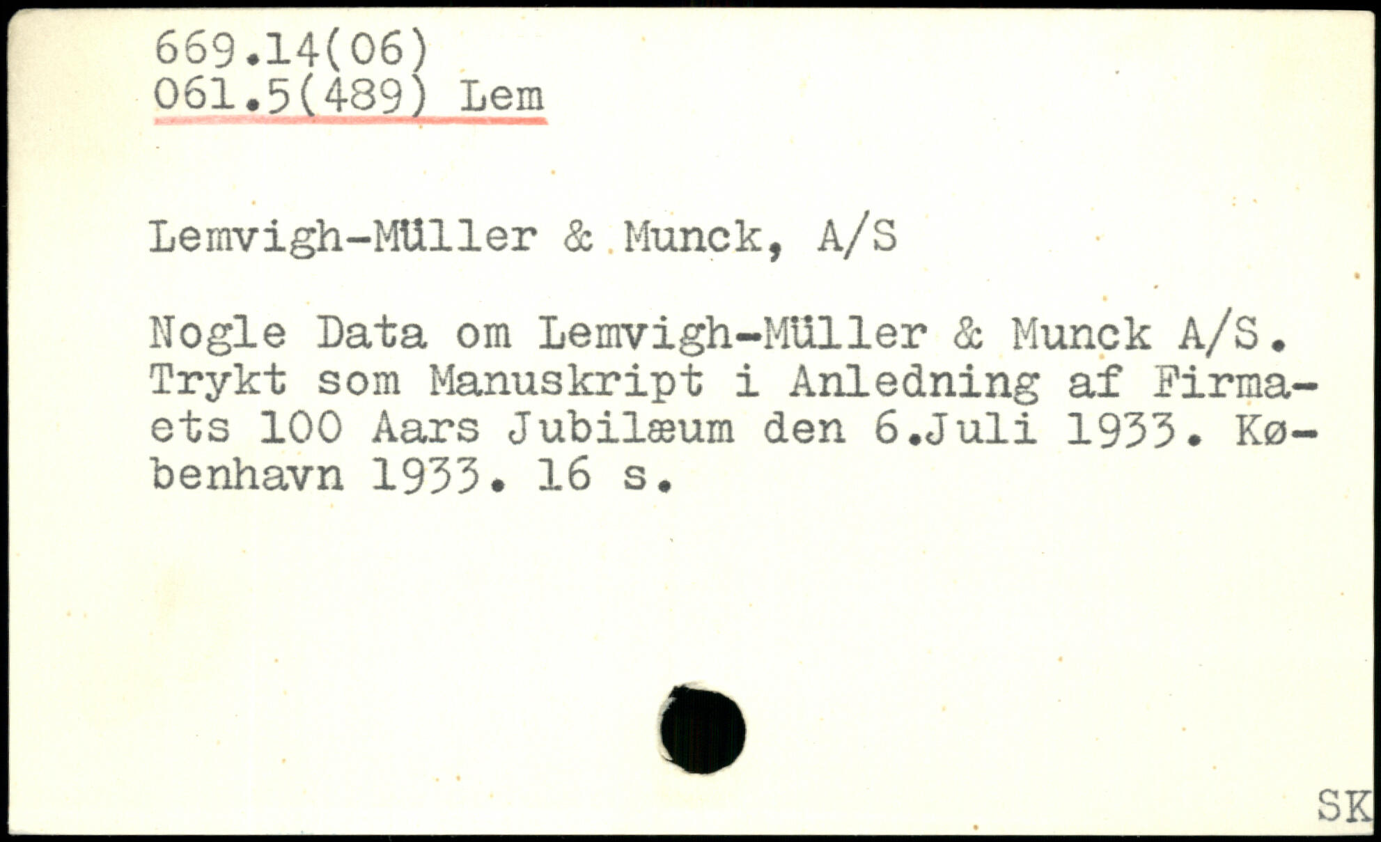 Nogle Data om Lemvigh-MUller & Munck A/S. Trykt som Manuskript i Anledning af Firmaets 100 Aars Jubilæum den 6.Juli 1933.