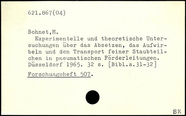 Experimentelle und theoretische Untersuchungen über das Absetzen, das Aufwirbeln und den Transport feiner Staubteilchen in pneumatischen Förderleitungen. Düsseldorf 1965.