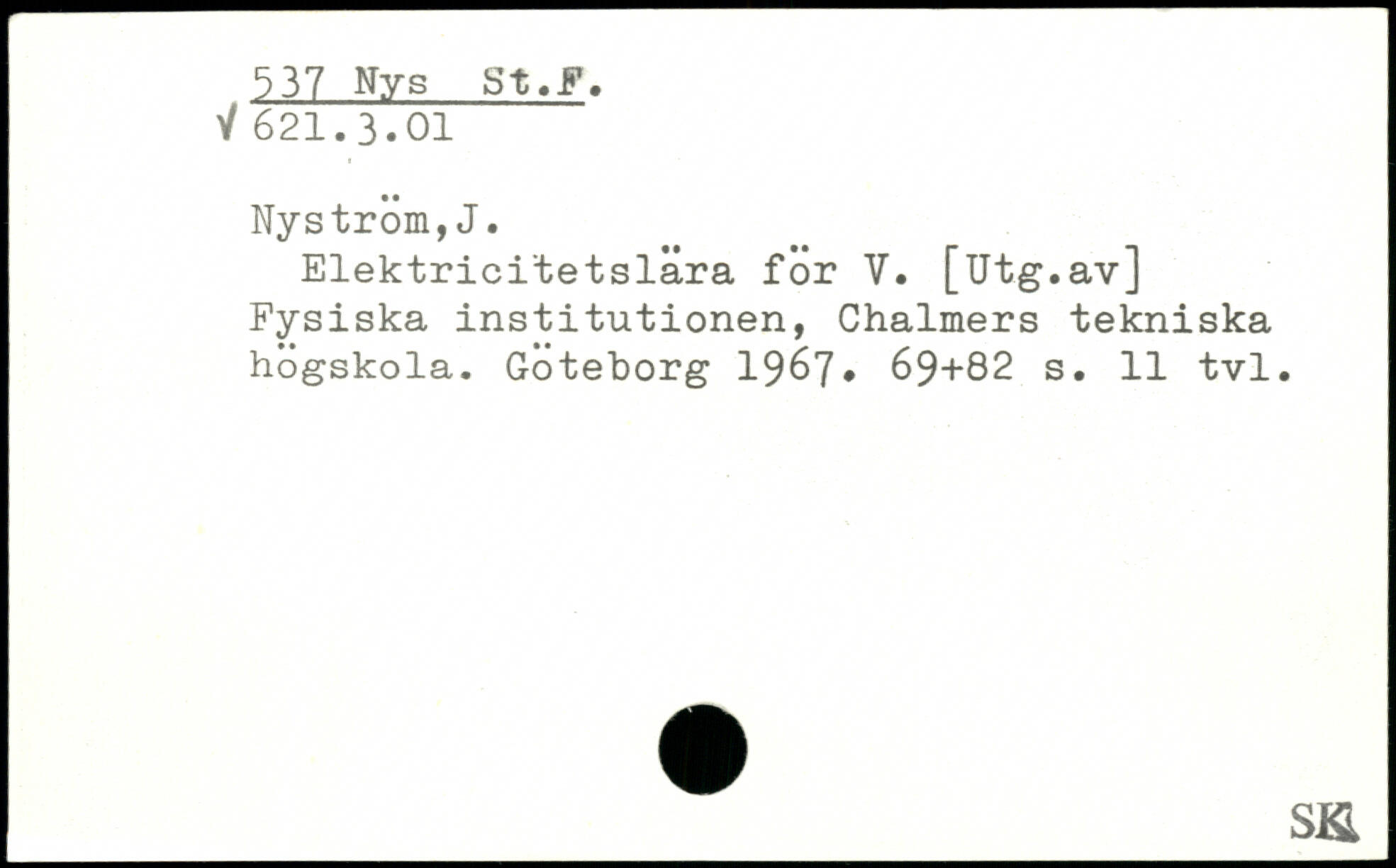 Elektricitetslära för V. [Utg.av] Fysiska institutionen, Chalmers tekniska högskola. Goteborg 1967#