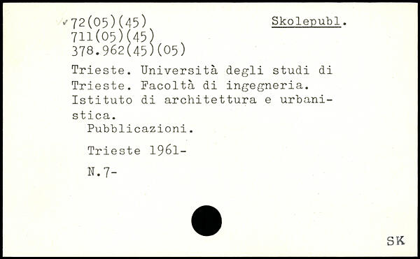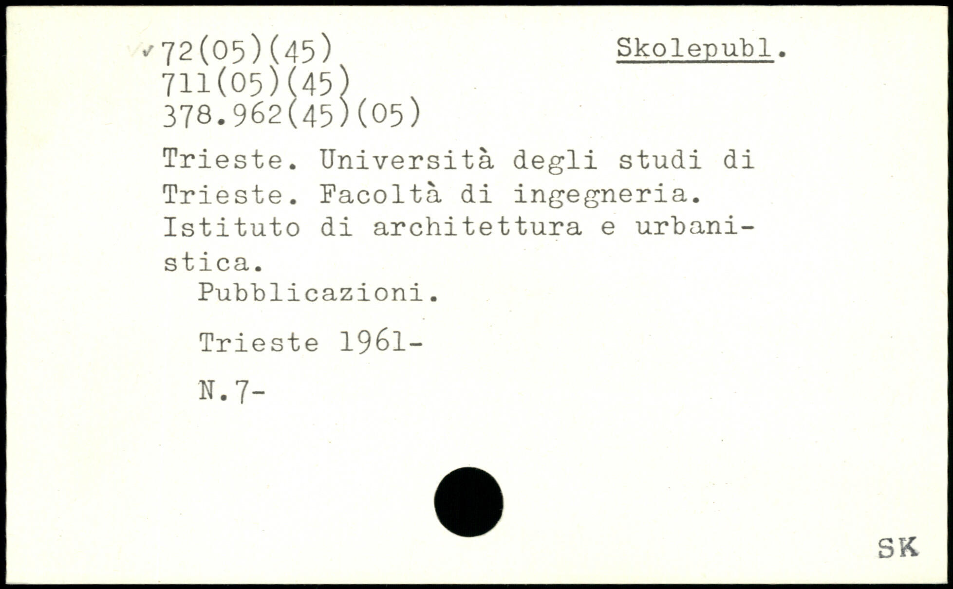 Trieste. Università degli studi di Trieste. Facoltà di ingegneria. Istituto di architettura e urbani-stica. Pubblicazioni. Trieste 1961- N.7-